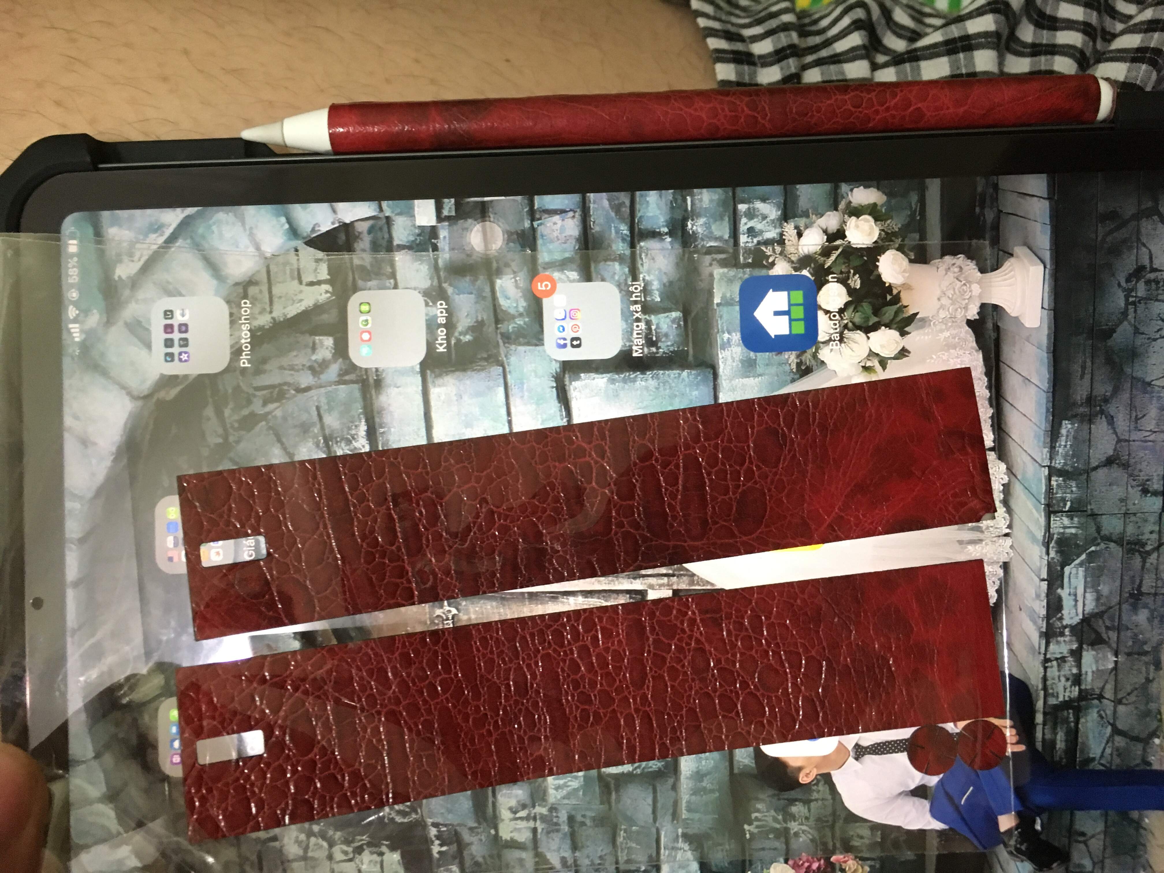 2 bộ dán da cho Apple pencil 2 ( da cóc nhật đỏ đen) : 150k / 1 bộ