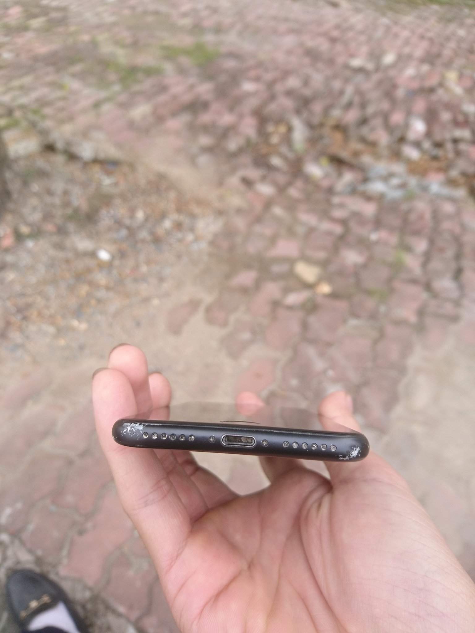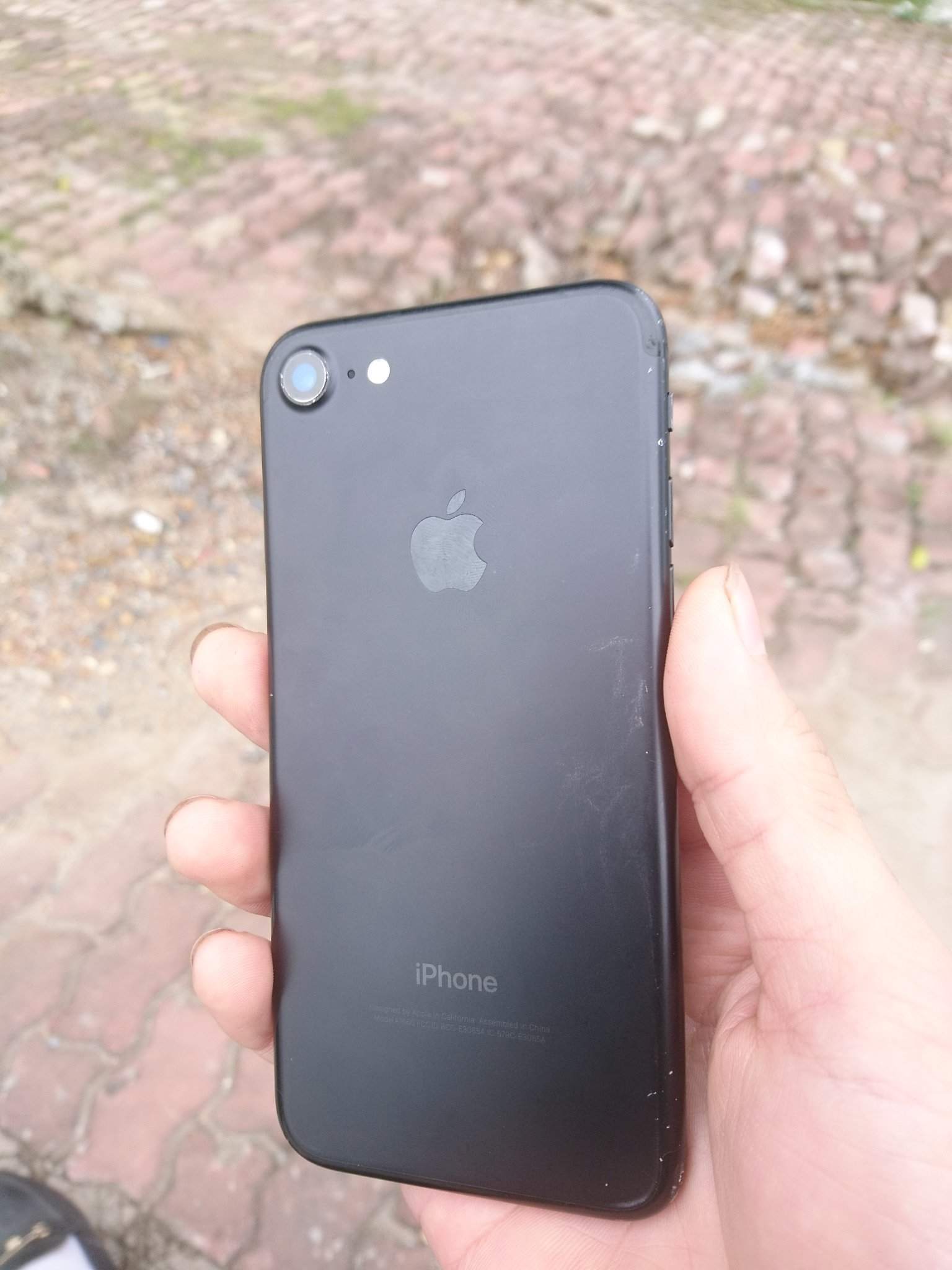 Iphone 7 lock đen nhám, máy móc zin, vỏ cạnh dưới xấu, màn xước nhẹ.