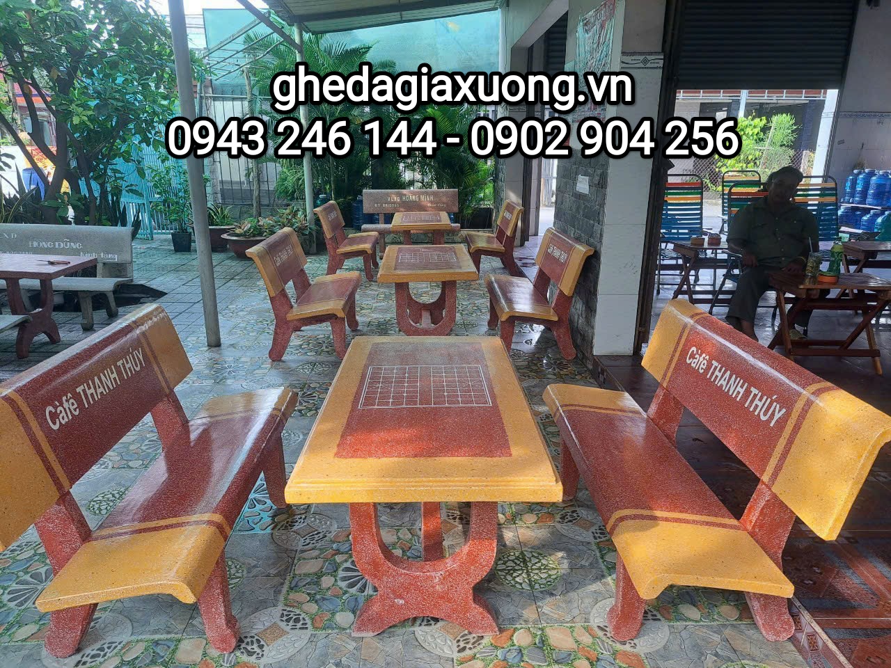 vườn, ghế đá giả gỗ, ghế đá gia đình…