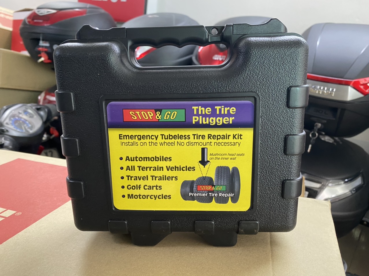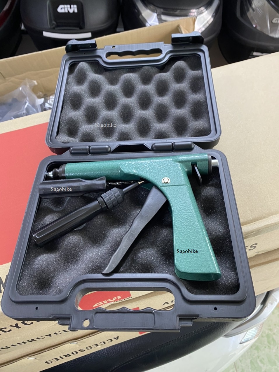 Bộ vá súng cao cấp Stop and Go: Là dụng cụ dùng để vá các loại vỏ xe không ruột cho xe ô tô, moto, xe máy…