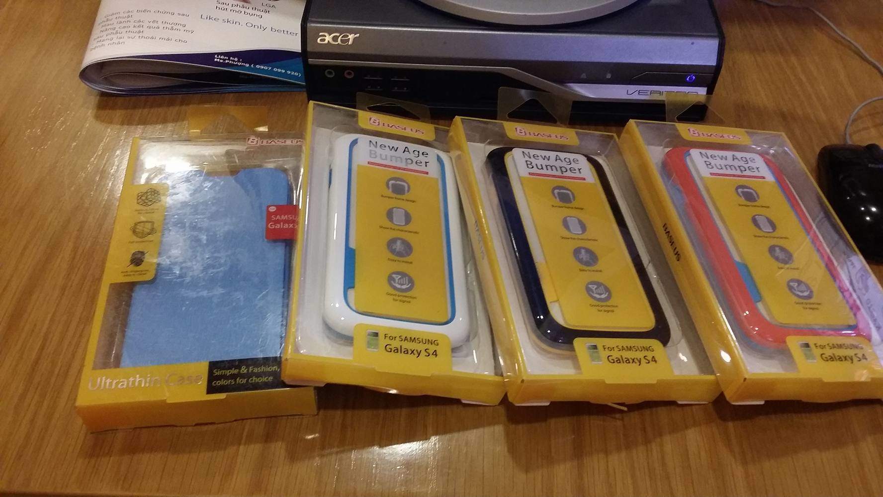 -Hiện mình có 3 cái Bumper ốp viền và 1 cái bao da chính hãng Baseus cho Samsung S4 hàng cao cấp giá trị trường >350k