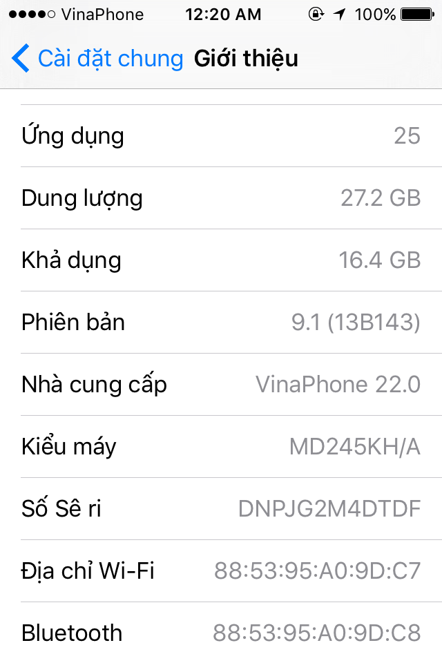 Máy đang chạy ios 9.1 (có thể downgrade)