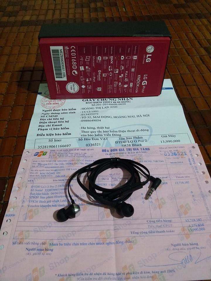 Máy mới mua ngày 06/06/2014,còn 11 tháng bảo hành vang FPT nữa , hóa đơn mua hàng + giấy tờ bảo hành vàng (đứng tên em gái) còn đầy đủ cả,máy thì full box, sạc, cáp, tai nghe Quadbeat 2 ko thiếu gì hết.