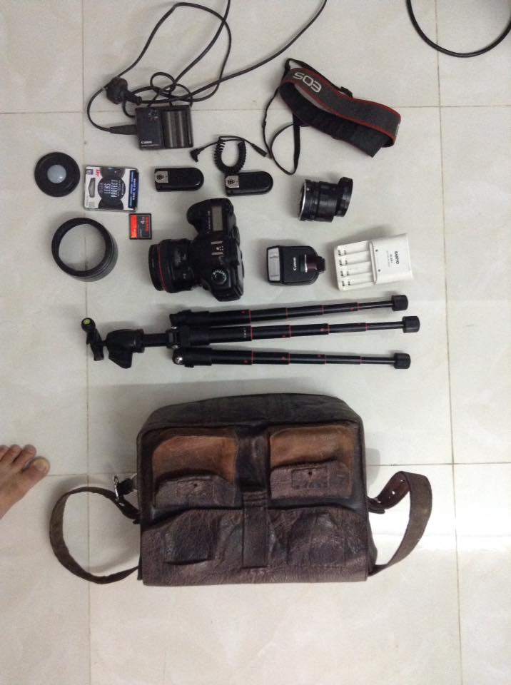 phụ kiện: 2 pin, 2 thẻ 8g, trigger, tripod, flash, filter, tube macro, túi da handmade
