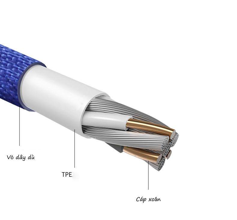 - Thiết kế thông minh với đầu nhôm bảo vệ chống gãy ở 2 đầu cáp & dây mềm dẻo chất liệu Linen siêu bền, chống gãy, đứt, không rối xoắn dây.