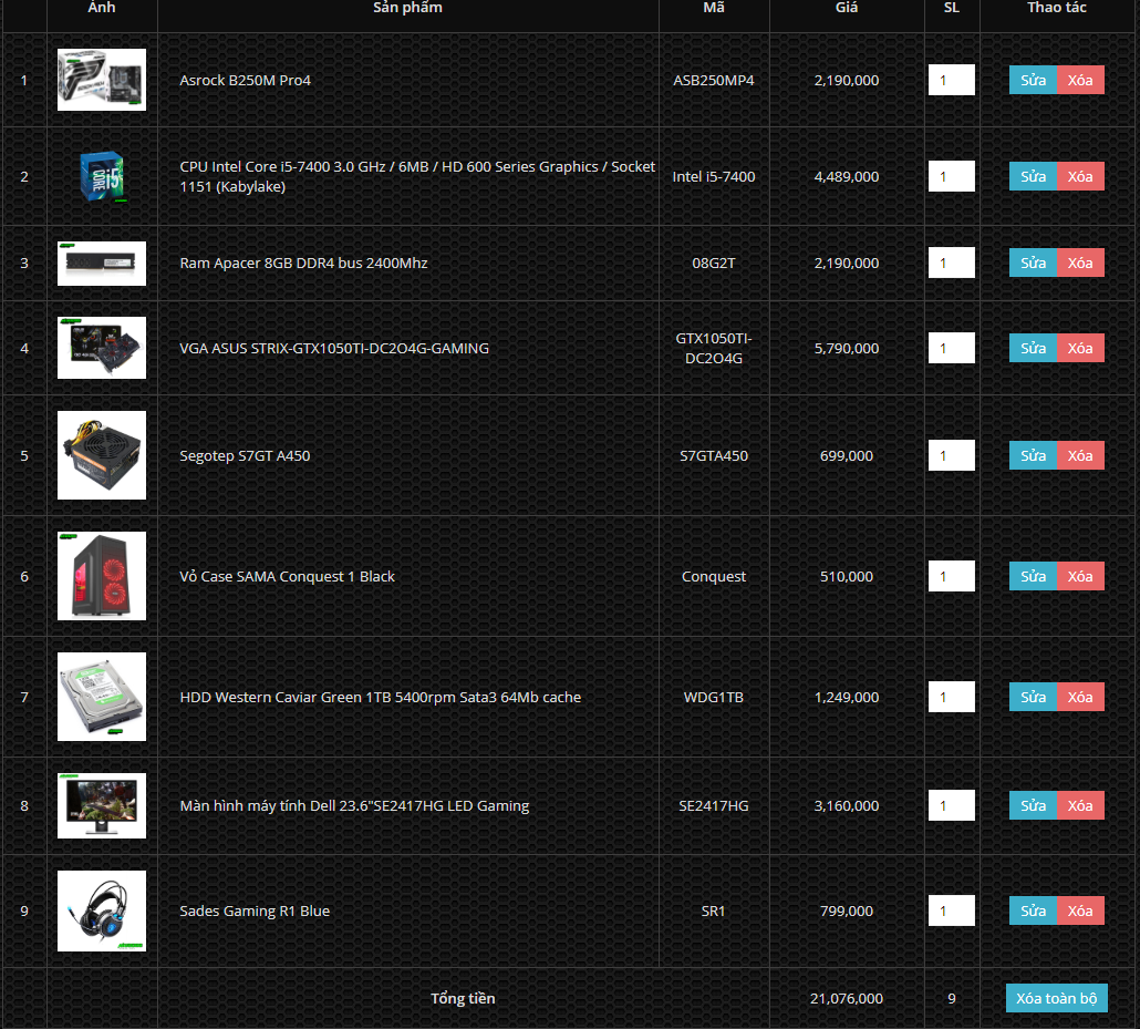 - VGA Asus Strix Gaming GTX1050 Ti 2Fan