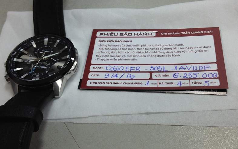 Casio EFR - 303L mua chính hãng ở Hải Triều. Mua ở Hải Triều thì các bạn biết chế độ hậu mãi rất tốt nha.