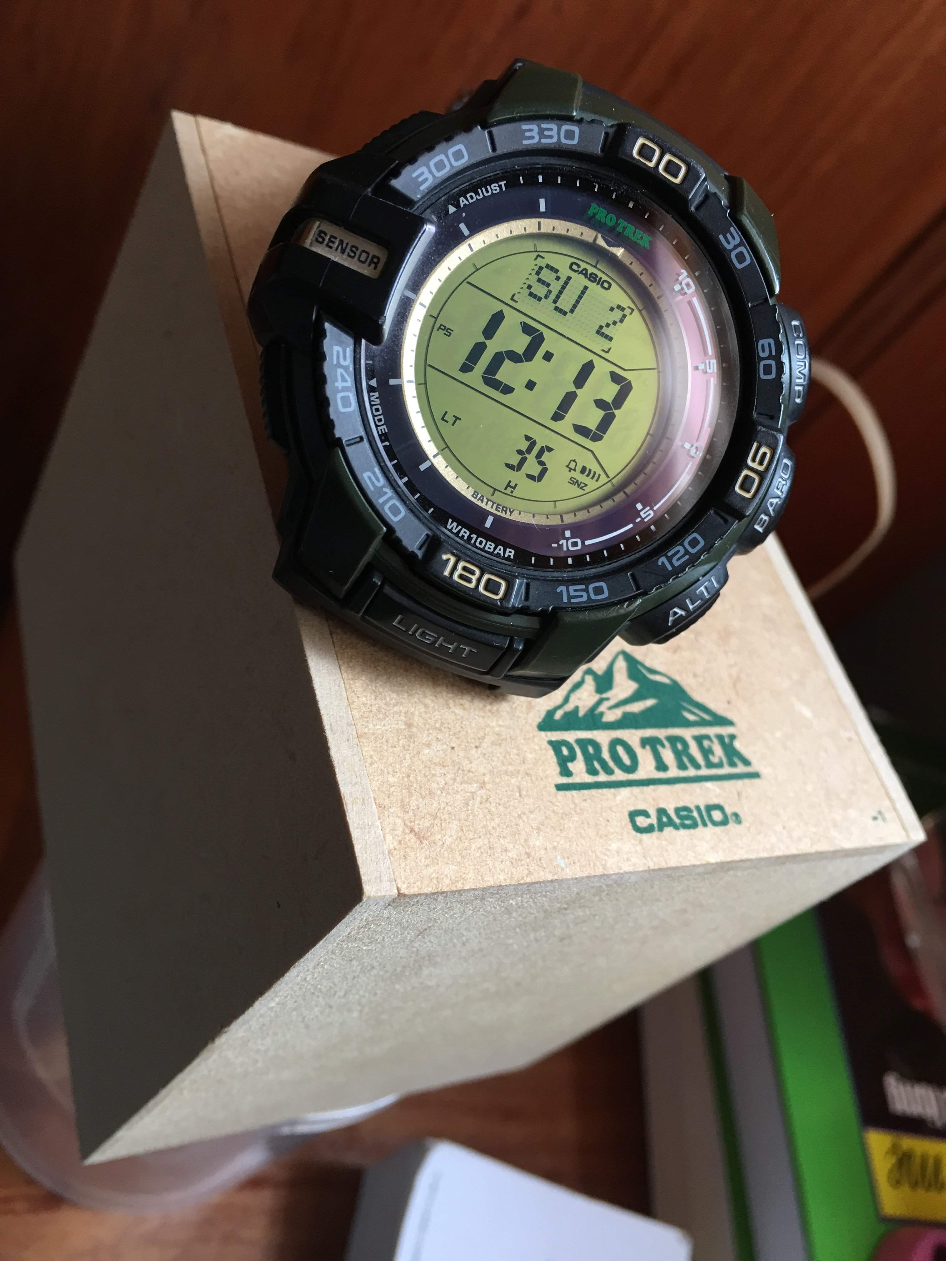 Mình có 1 em Protrek PRG 270B full box đầy đủ giấy tờ, hộp gỗ, dây dù hơi cũ xíu, còn đồng hồ thì vẫn đẹp. Tổng thể khoảng 90%. Các chức năng cơ bản gồm: