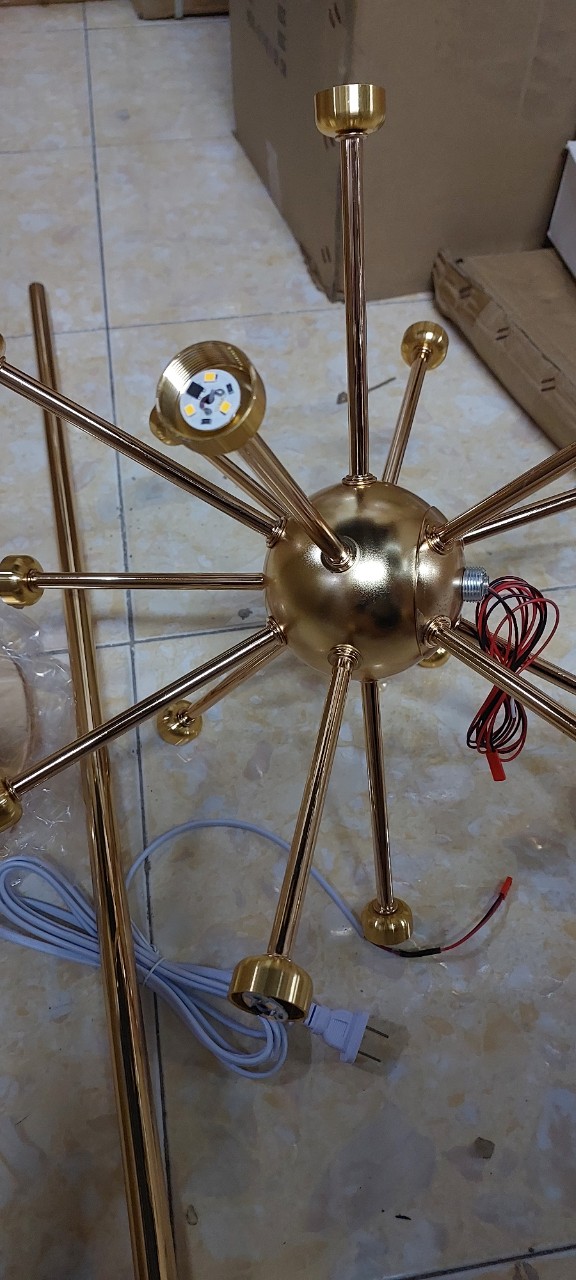 Sản phẩm gồm : đế đèn, cột 1m2, chùm 15 tay, 15 hoa , dây điện dài 1m5