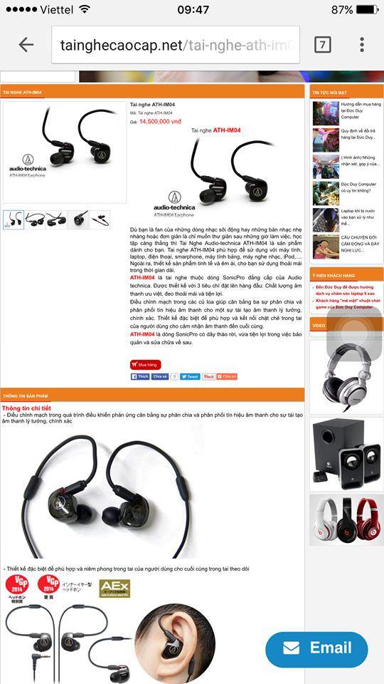 ATH-IM04 là tai nghe thuộc dòng SonicPro , đẳng cấp của Audio technica . Được thiết kế với 3 tiêu chí đặt lên hàng đầu : Chất lượng âm thanh ưu việt , đeo thoải mái và tiện lợi.Dù là fan của những dòng nhạc sôi động hay những bản nhạc nhẹ nhàng hoặc đơn giản là chỉ muốn thư giãn sau những giờ làm việc, học tập căng thẳng thì Tai Nghe Audio-technica ATH-IM04 là sản phẩm dành cho bạn. Tai nghe ATH-IM04 phù hợp để sử dụng với máy tính, laptop, điện thoại, smarphone, máy tính bảng, máy nghe nhạc, iPod,.... ( Mọi người cần thêm thông tin vè tai nghe thì lên google giúp cháu)