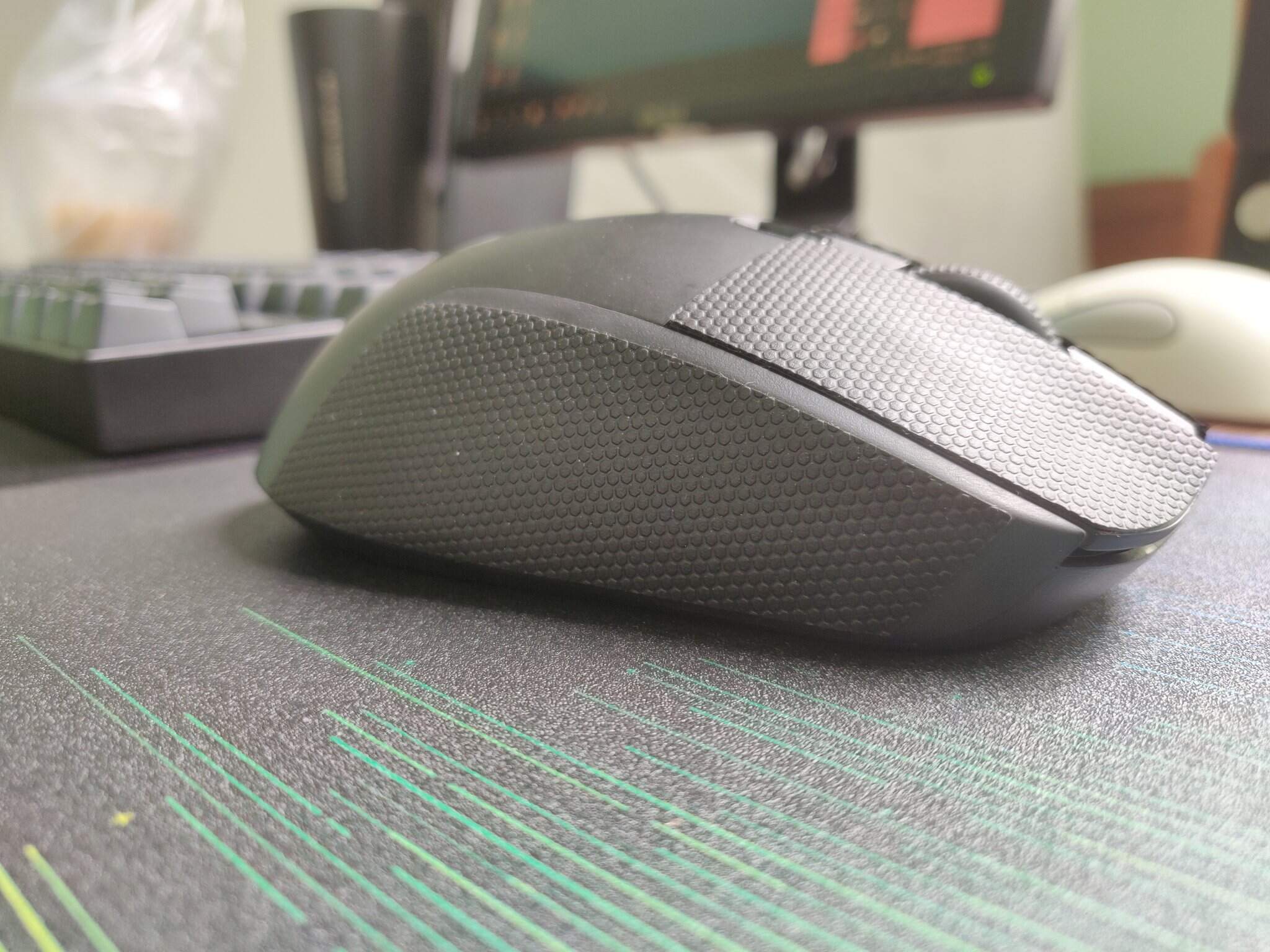 Các chức năng đang trong tình trạng hoàn hảo ko bị double click, switch êm ko ồn, con lăn rất mượt, feet zin, đèn đốm còn nguyên, pin sử dụng trung bình 3 ngày nếu ko game nhiều. Ngoại hình tương đối ko hoàn hảo do nhét balo ko có case bag, cao su ốp bên ngón tay cái bị láng một ít nên mình đã dán silicon chống trượt để không bị thêm.