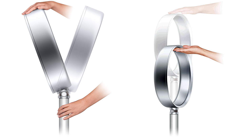 - Dyson AM08 có thể điều chỉnh độ cao, hướng gió lên hay xuống chỉ với thao tác đơn giản