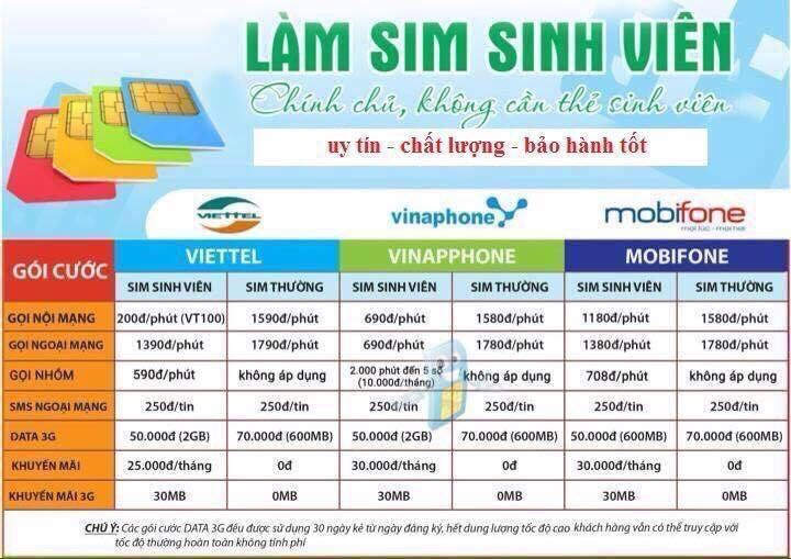 Chuyển đổi sim sinh viên ( full 3 nhà mạng )