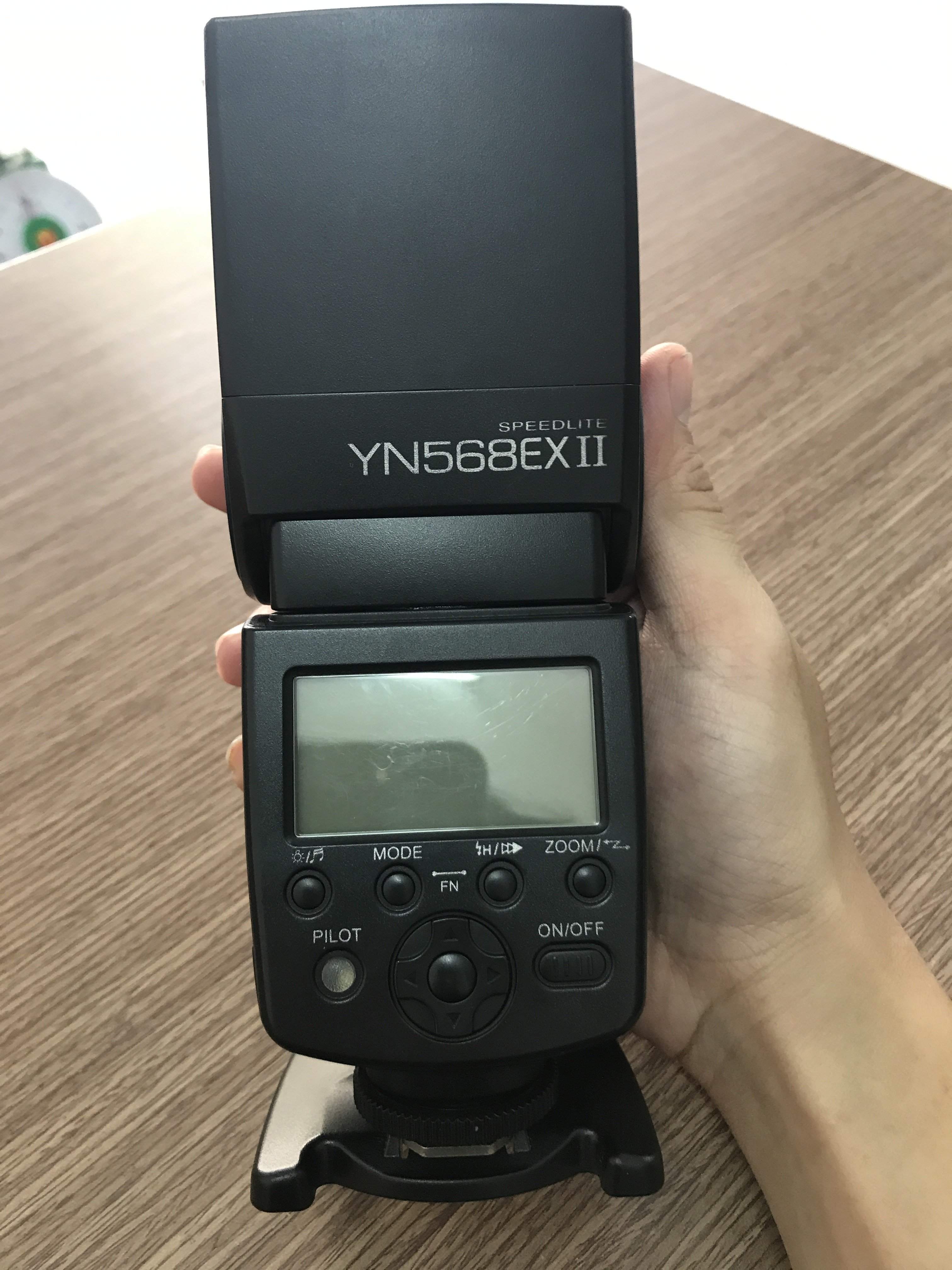1 flash YN568ii: choá trắng, có HSS, hoạt động ok, TTL chuẩn. Kèm chân vịt, túi đựng.