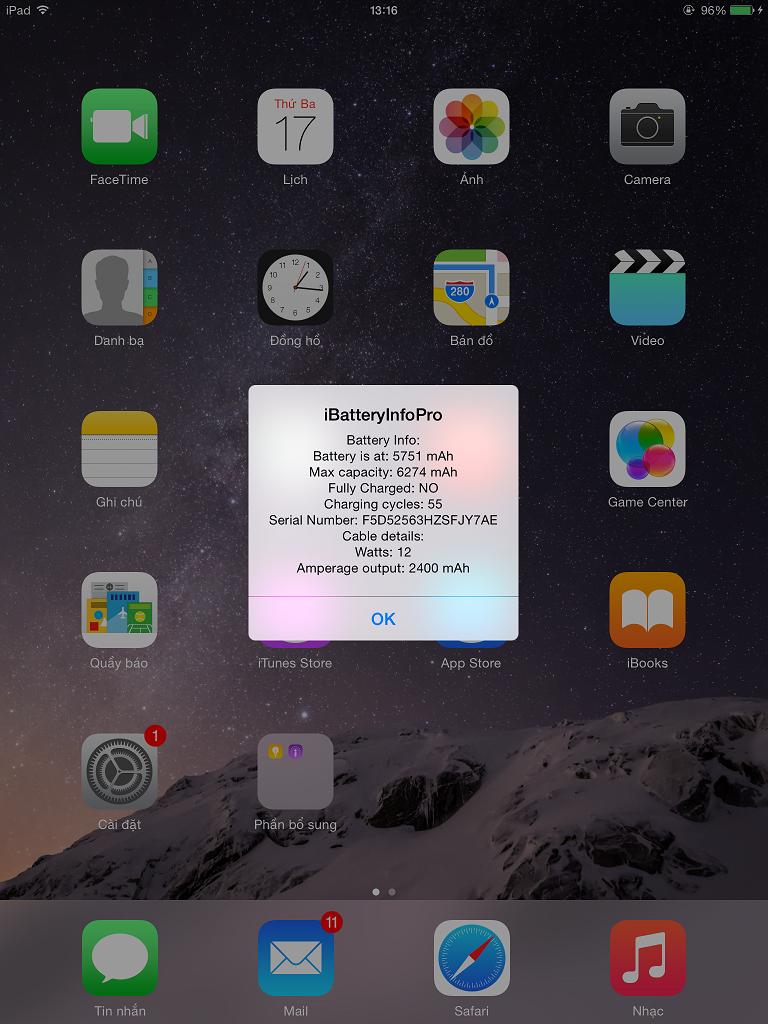 Đã test bằng Ibattey Info Pro ra đúng nguồn 12w 2400mAh