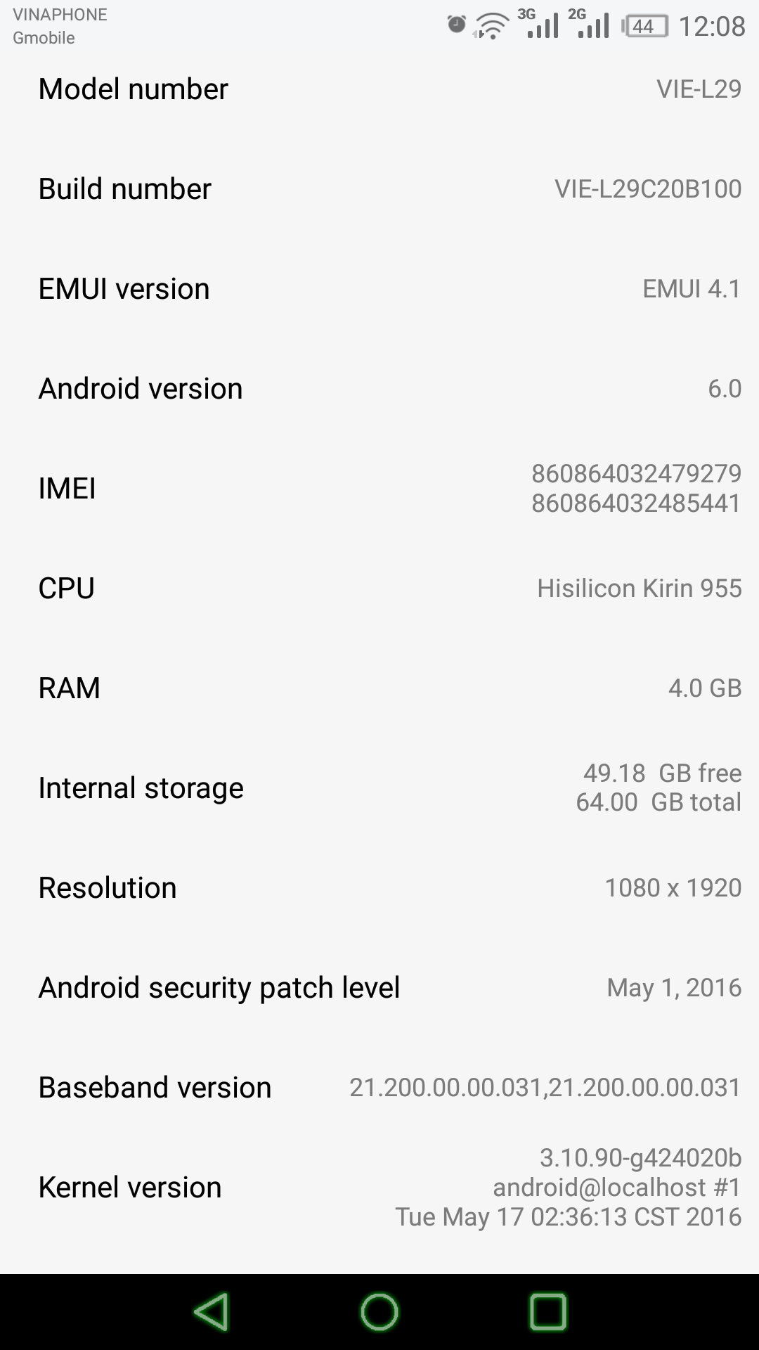 Huawei P9 plus bản cao cấp của P9 ram 4gb rom 64gb, hỗ trợ sạc nhanh 1h là đầy pin 3400 của máy. Máy có force touch (giống Iphone) chỉ có mã VIE-L29 mới có tính năng này xem video đính kèm bên dưới. Phụ kiện: cáp type C, sạc nhanh chính hãng Huawei quick charge mới mua, ốp lưng. Tiếng Việt google play đầy đủ. Hàng xách tay, bao xài 7 ngày. Máy đẹp, có vài chấm lưng nhỏ. Anh em trao đổi thông tin thì Inbox hoặc Zalo viber đều được. SMS nhé!! không giao lưu.