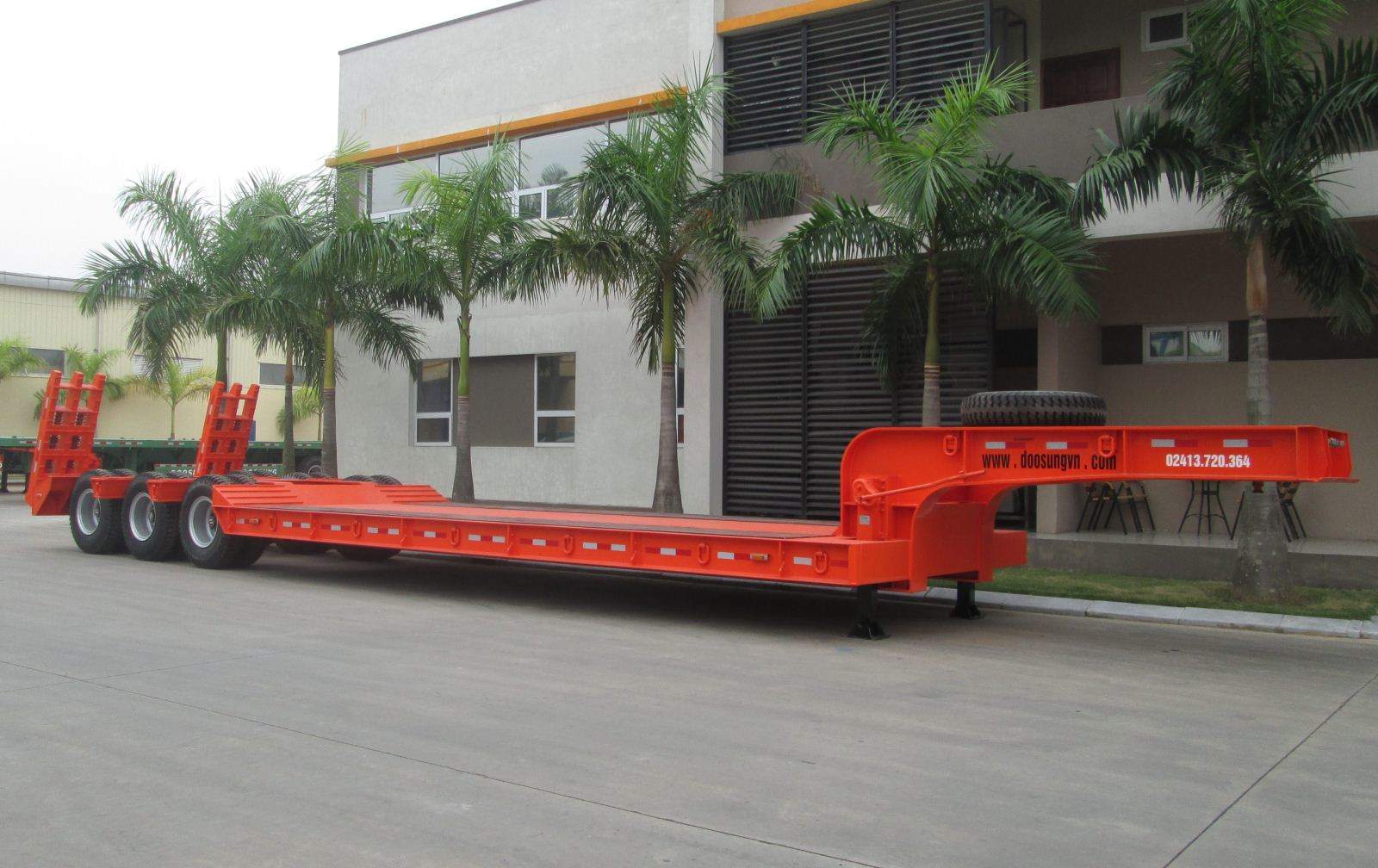 Đại lý bán Mooc lùn sàn dài 14m Doosung 3 trục chở máy chuyên dùng có sẵn tại bãi.