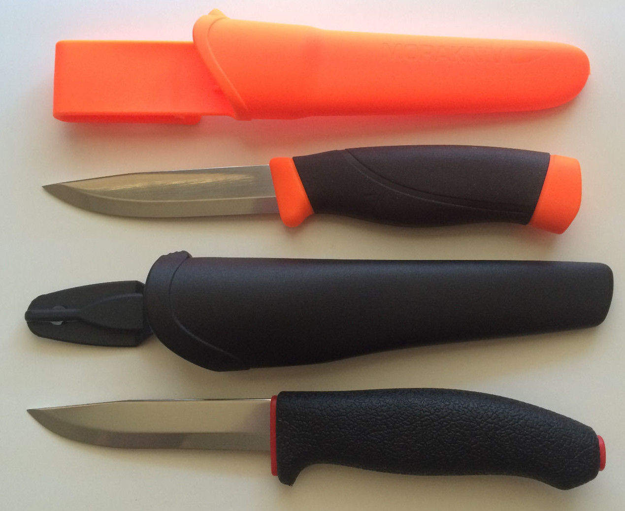 Dao màu cam (new) (Đen đã bán): lưỡi dao 2.5mm, chiều dài lưỡi dao 104mm, chiều dài cán dao: 115mm, cán bằng cao su, giá 450,000vnd.