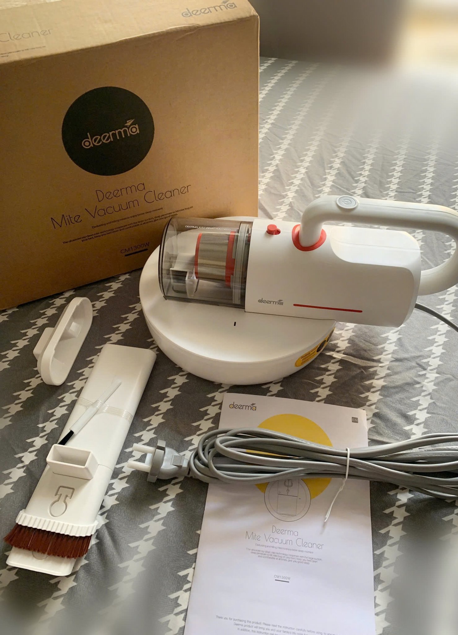 Máy hút bụi Deerma CM1300 diệt khuẩn bằng đèn UV. Có 3 đầu thay thế. Máy có Công nghệ lốc xoáy Pro Cyclone, Rocket Vacuum