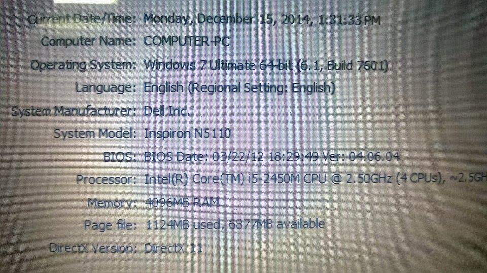 CPU:Intel, Core i5, 2450M, 2.50 GHz