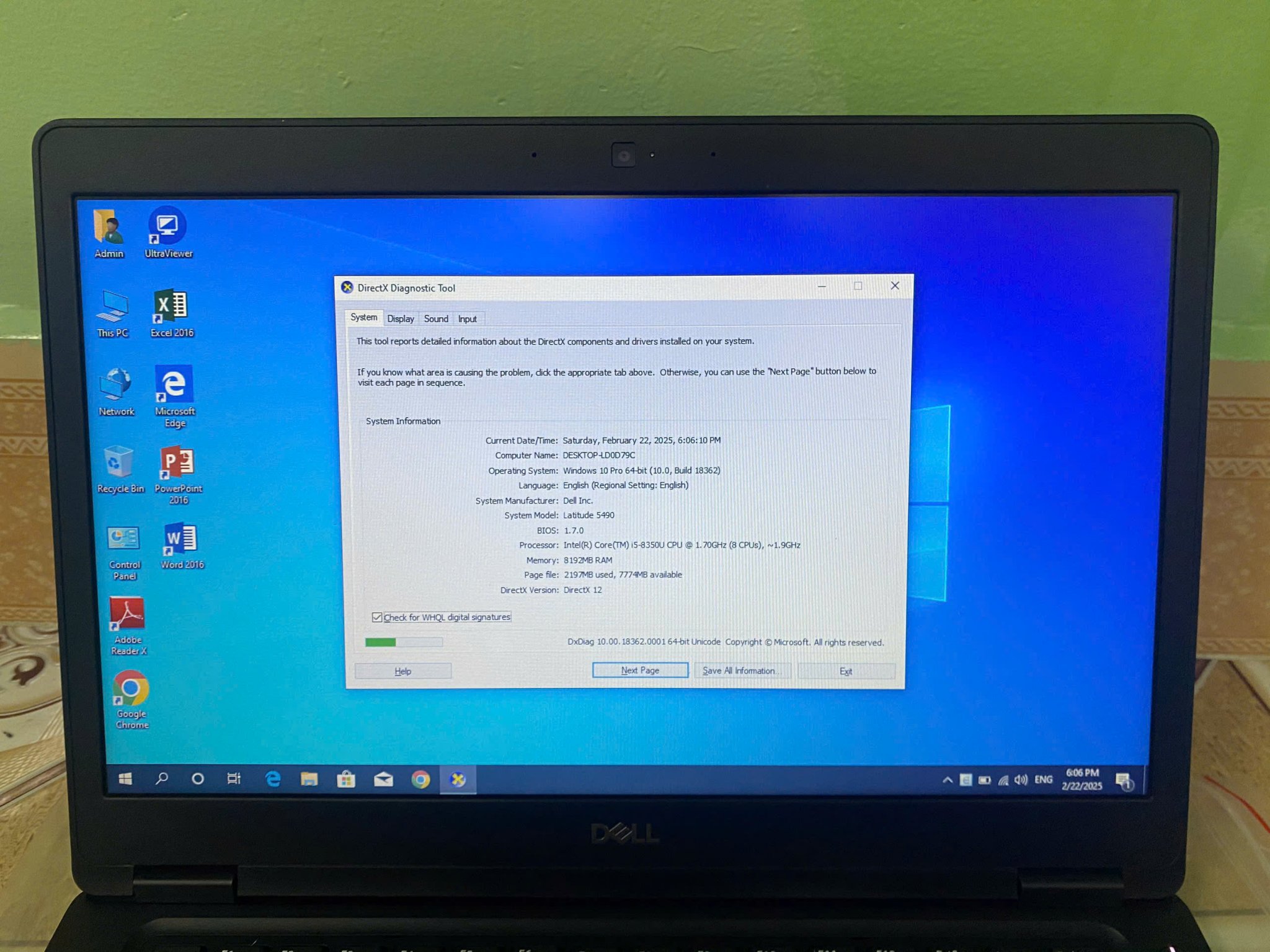 Dell Latitude 5490 Core i5 8350u Ram 8G SSD 256G 14in Win 10 Pro US