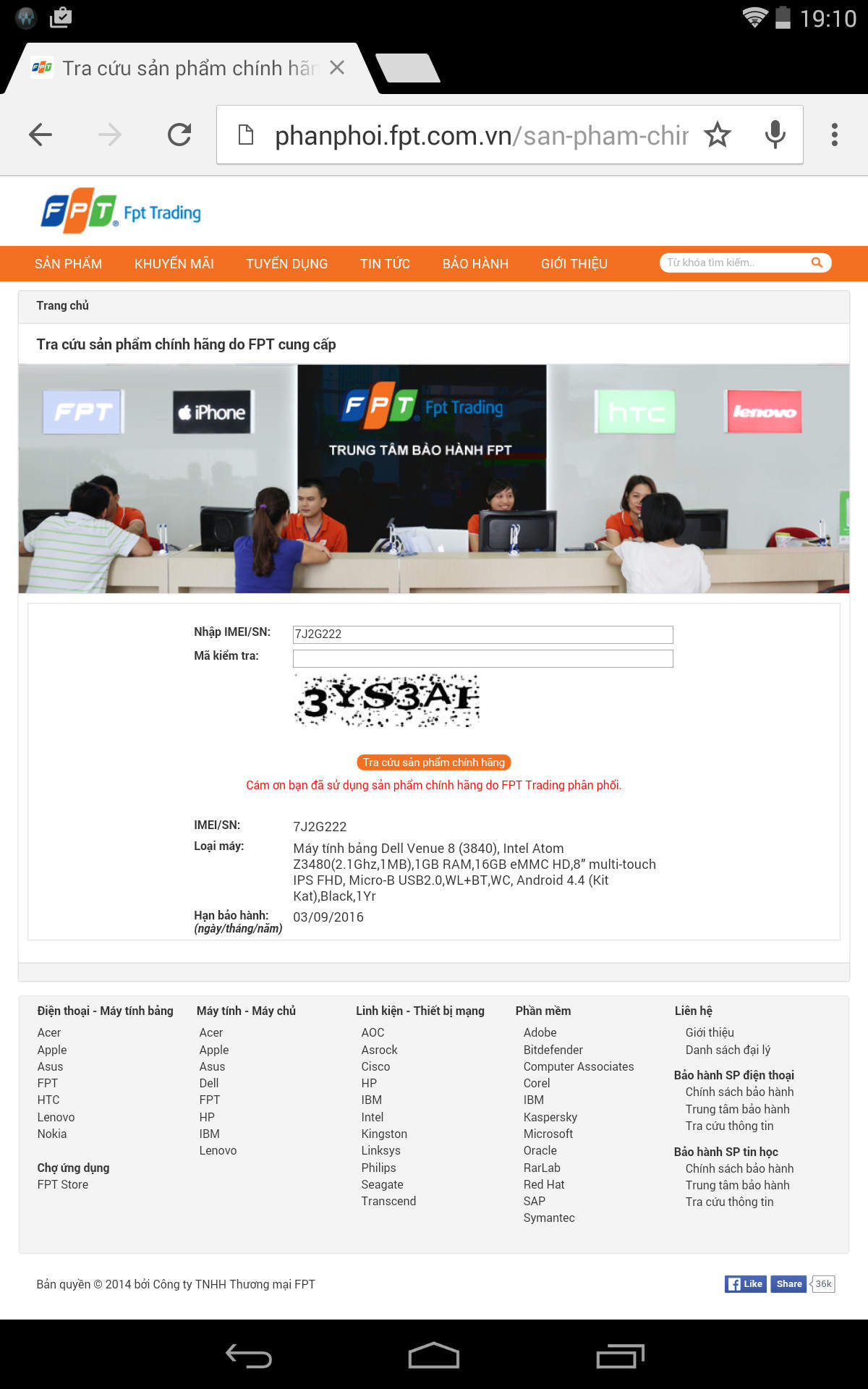 Cần thanh lý lên đời chiếc Dell venue 8 hàng FPT nguyên hộp, còn bảo hành chính hãng đến tháng 9/2016. máy đẹp như mới, màn hình full hd cực sắc nét, xem phim nghe nhạc đọc báo tuyệt vời.