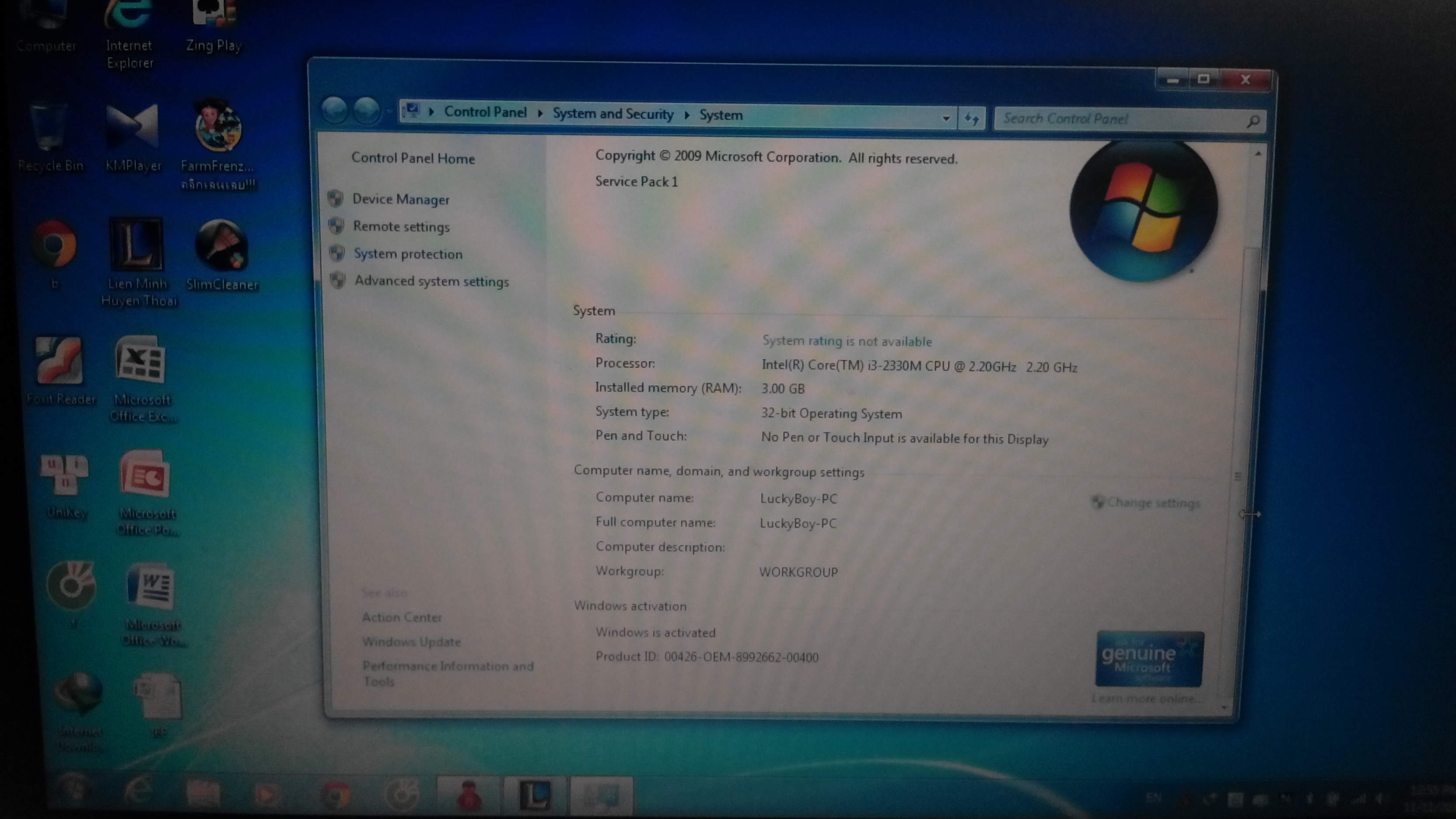 CPU Intel Core I3 2300M 2,2x4 chạy rất nhanh nhé