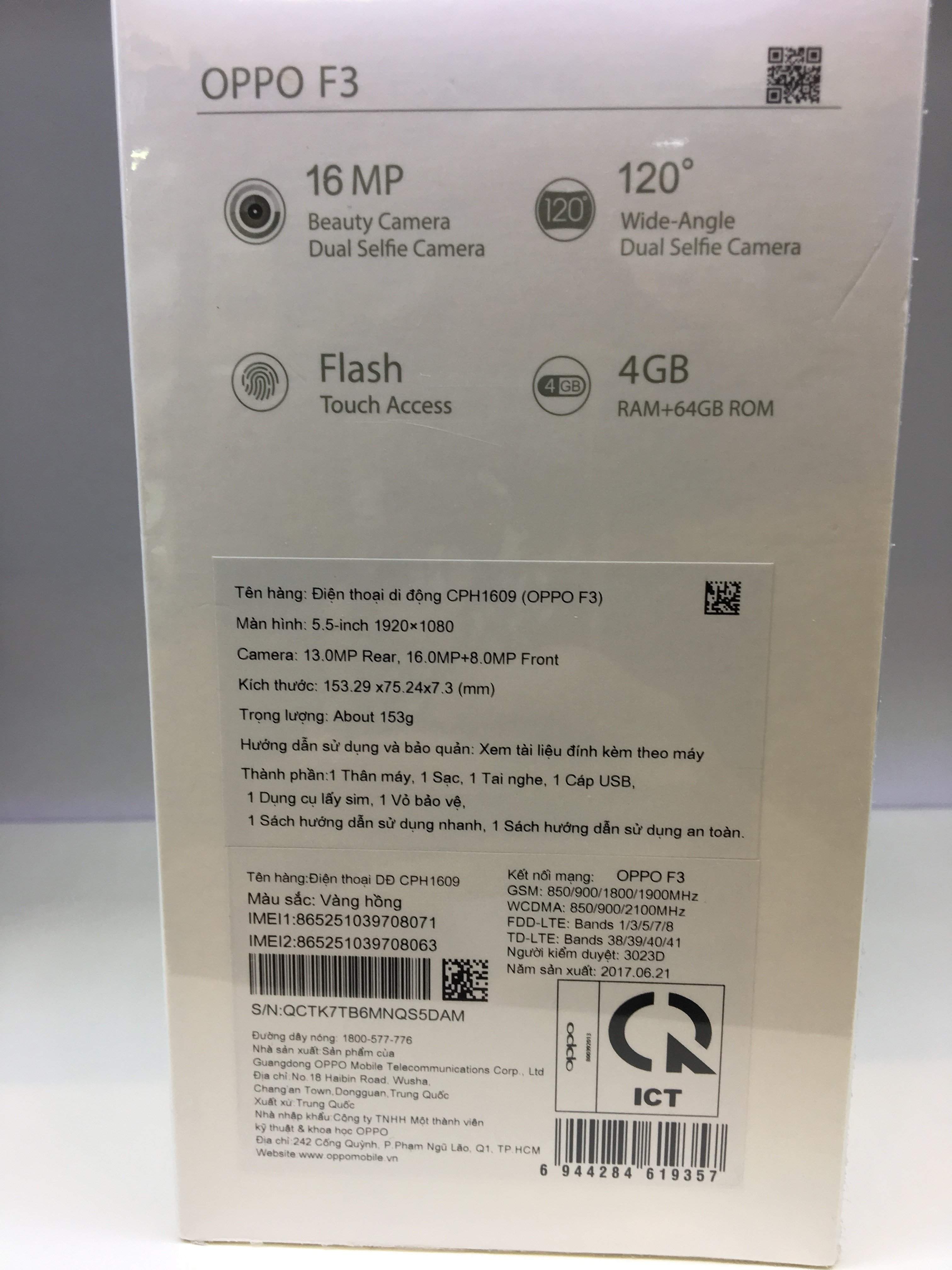 oppo f3 máy mới camera 16mp ram 4g rom 64g màn hình 5.5" tặng nắp lưng trong bảo hành 1 năm chính hãng oppo liên hệ: XXX địa chỉ: 19 cmt8 phường bến thành quận 1( store: Hoàng phát 360)