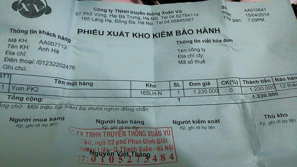 Mình đang dùng em Pk2 giờ muốn lên đời PK1. Bác nào có định đổi xuống pm mình nhé! Vẫn còn bảo hành xuân vũ đến t4/2015 full box. Em PK2 mình dùng nhiều nên bị mờ mất chữ rồi (chữ in lên dễ bay quá) có tí ảnh cho các bác xem. Ai đổi liên hệ mình số đt XXX