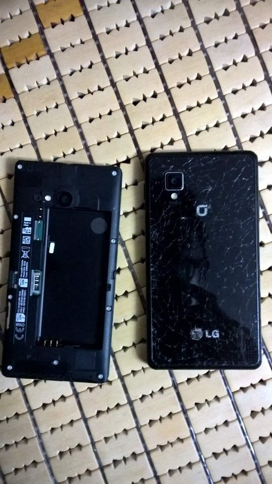 - Mặt kính sau bị nứt ( không ảnh hưởng gì đến hoạt động của máy, vợ em dùng 1 năm nay chưa có vấn đề gì )