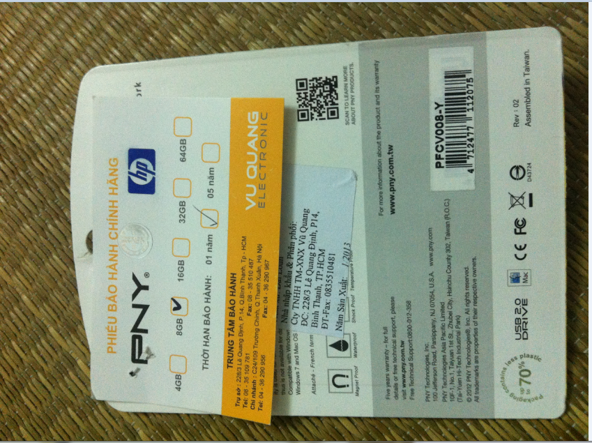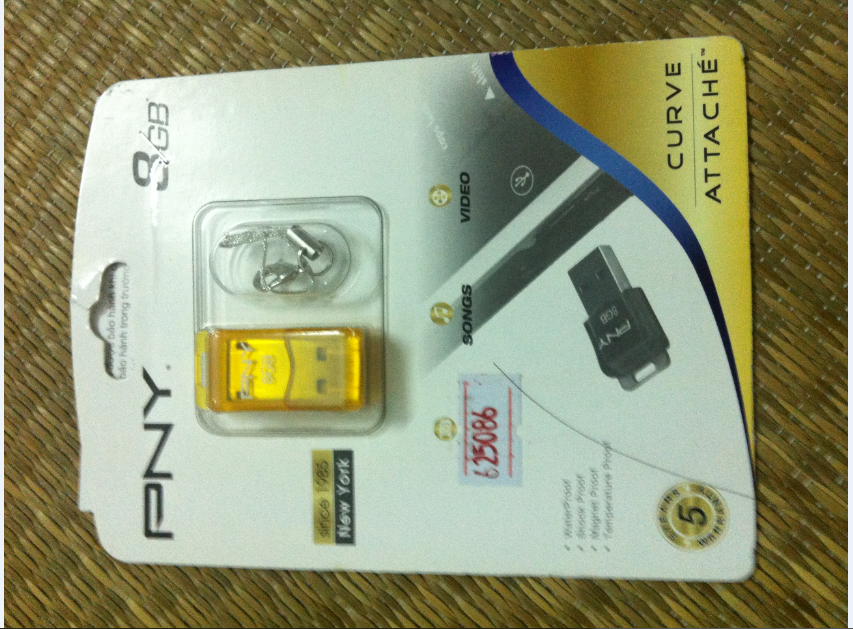 1. Cái usb 8g hàng PNY chưa bóc tem bán 140k, tặng kèm một đầu đọc thẻ 2.0 (20k).