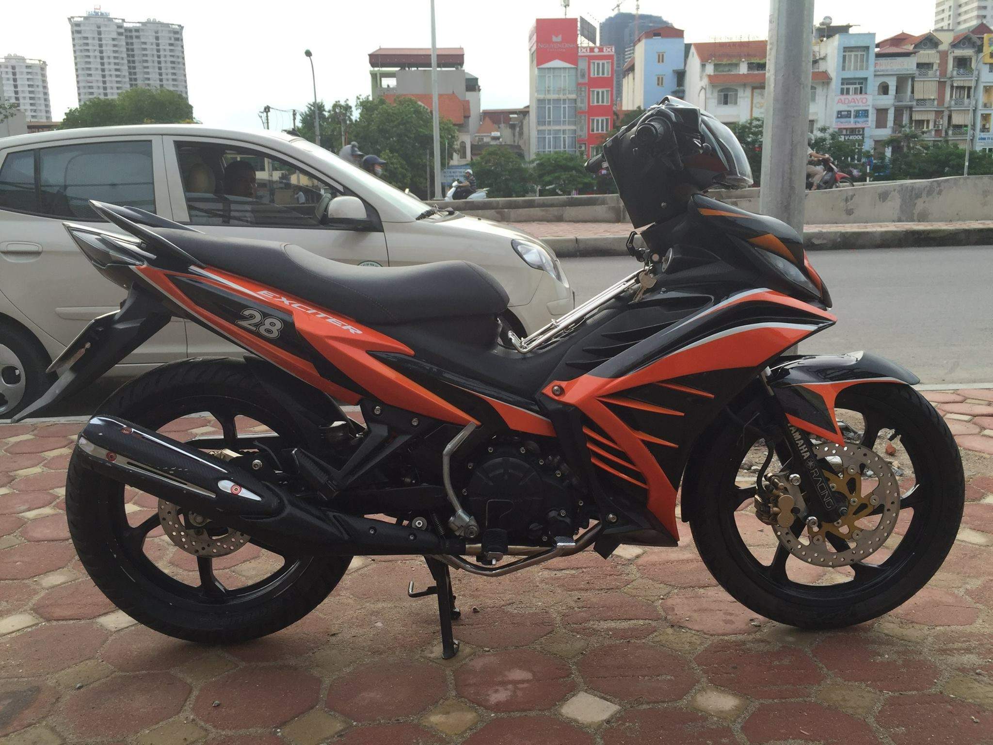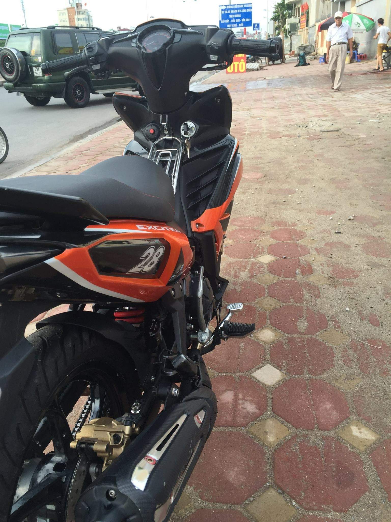 Mình bán Exciter Đỏ Đen đời 2012, mua và đăng ký 5/2013. Xe chính chủ sử dụng từ đầu, biển Đống Đa đẹp 29E1 - aab.aa, đã sơn đen vỏ phuộc, gắp sau và lốc máy y như GP. Xe đã lên 1 số đồ như dàn áo chế mủ, phuộc Yss, full ốc inox cả xe, đèn gương cầu chế mủ của anh Dương GCHN, mâm và đĩa Yaz fake, đèn demi full o'block (Mâm và dàn áo zin vẫn còn và rất đẹp). Xe thay dầu và nước mát motul rất đều, tình trạng hoàn hảo, máy cực ngon, mới lên đôi lốp Michelin Pilot Street size 80/90 trước và 110/80 sau còn gai gió, xích vàng DID. Anh em thiện chí mua có fix. Vui lòng liên hệ mình oXXX. Cảm ơn anh em đã quan tâm.