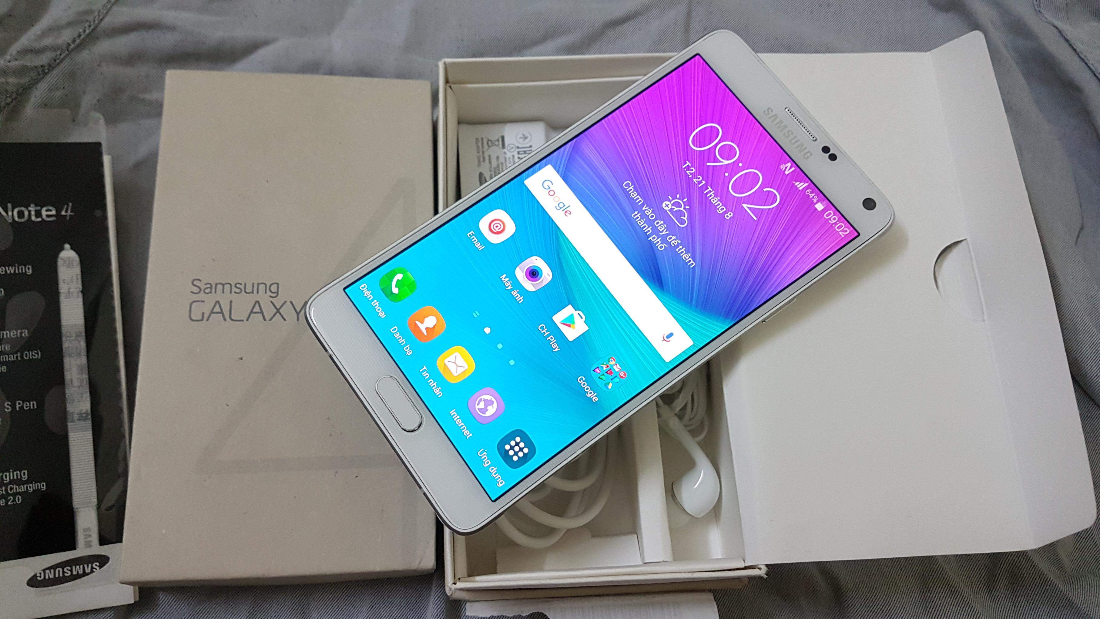 Galaxy Note 4 Fullbox 2 sim màu trắng đẹp 99%. Máy thì các bác cứ yên tâm về chất lượng,k có 1 lỗi lầm nhỏ nào cả.ae mua về chỉ việc yên tâm mà sử dụng thôi,vì em mua bán tại nhà,bao test đầy đủ.Hình thức thì máy còn rất đẹp,gần như k có 1 vết xước nào cả.Mạnh dạn đánh giá tổng thể là 99%