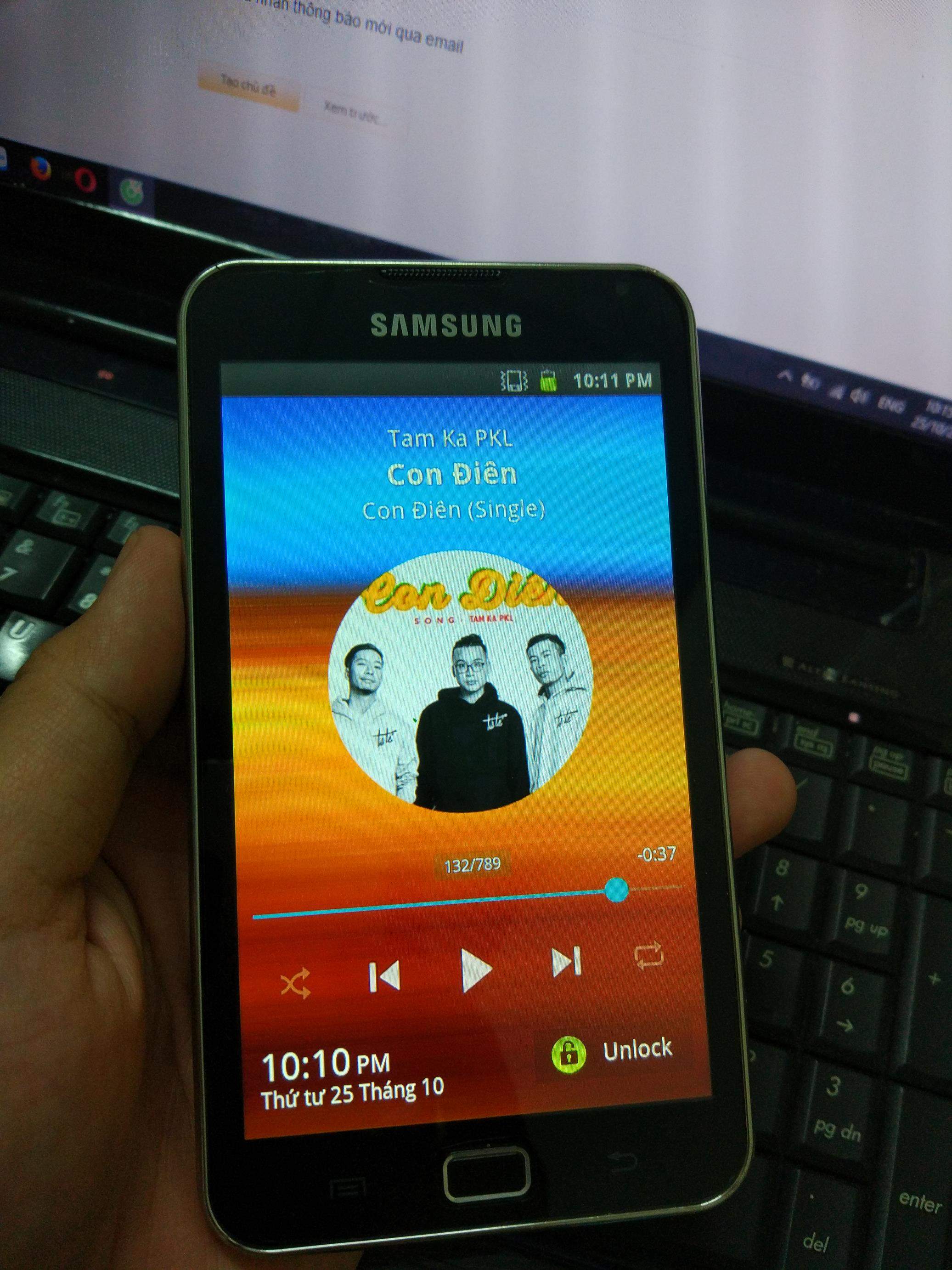 Cần bán em Galaxy Player 5.0 wifi bản quốc tế mã YP-G70CW, bộ nhớ trong 8gb có hỗ trợ gắn thẻ nhớ ngoài, ngoại hình như ảnh, android 2.3.6, màn hình 5in sáng đẹp, ko trầy, cảm ứng nghiêm chỉnh. Loa đôi khá hay, camera 5mpx. Pin 2500mAh rất trâu, onscreen trung bình >6h.