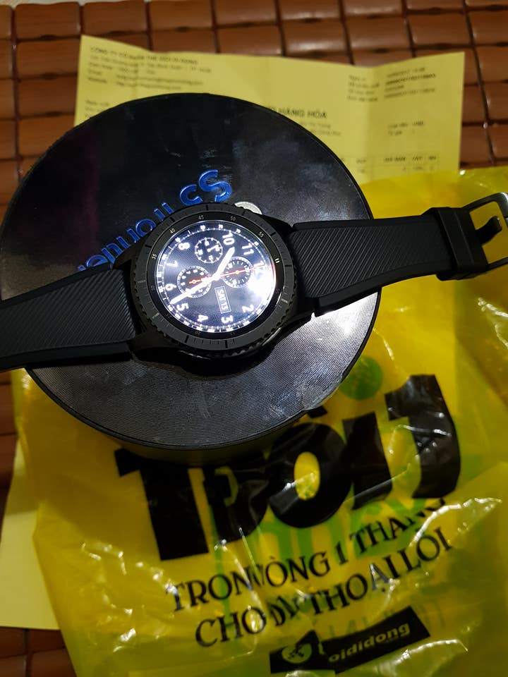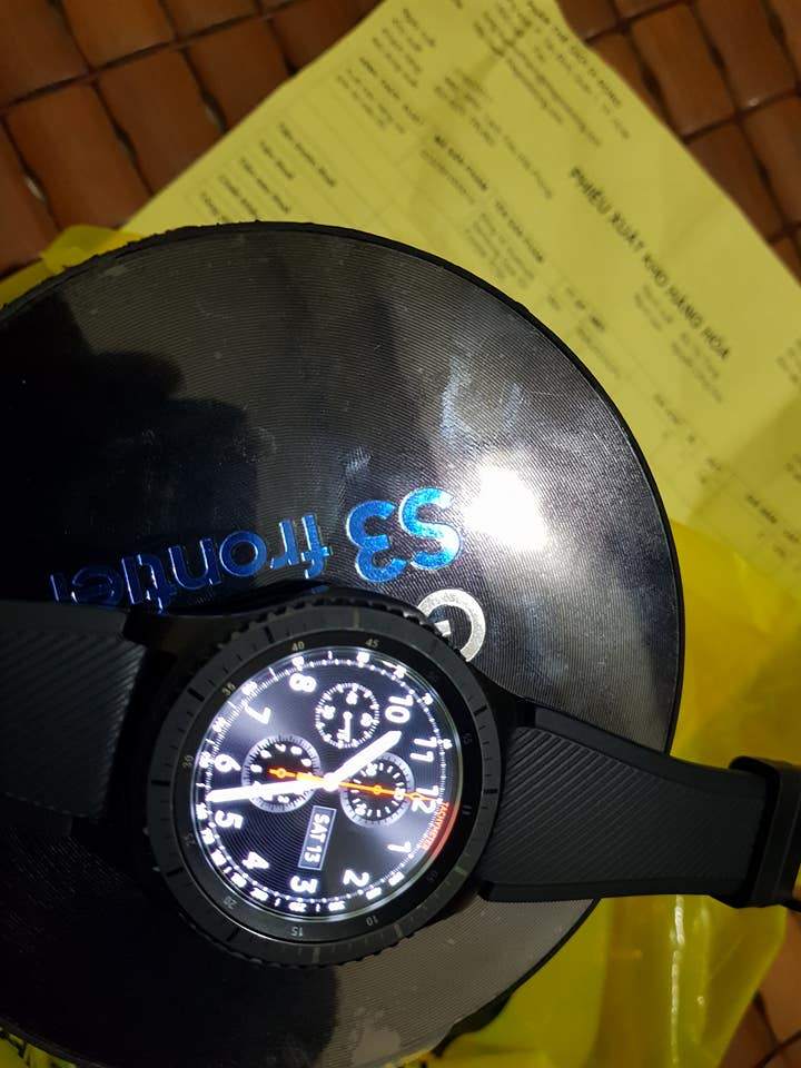 Gear s3 frontiers chính hãng 99%. Máy còn đẹp. Bảo hành dài lắm ae yên tâm. Fullbox. đủ 1 dây tặng kèm size s 1 dây size L. Sạc và dock. Sách vở.... hộp. Giấy tờ hóa đơn đỏ của thế giới di động luôn. Dùng chán rồi nên bán đi cho ae yêu công nghệ. Giá fix xăng xe ai cần alo 0868936926