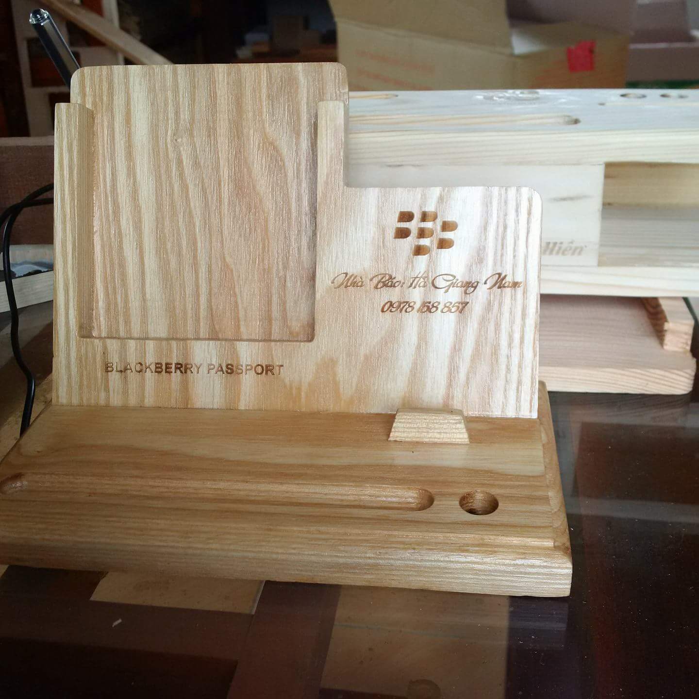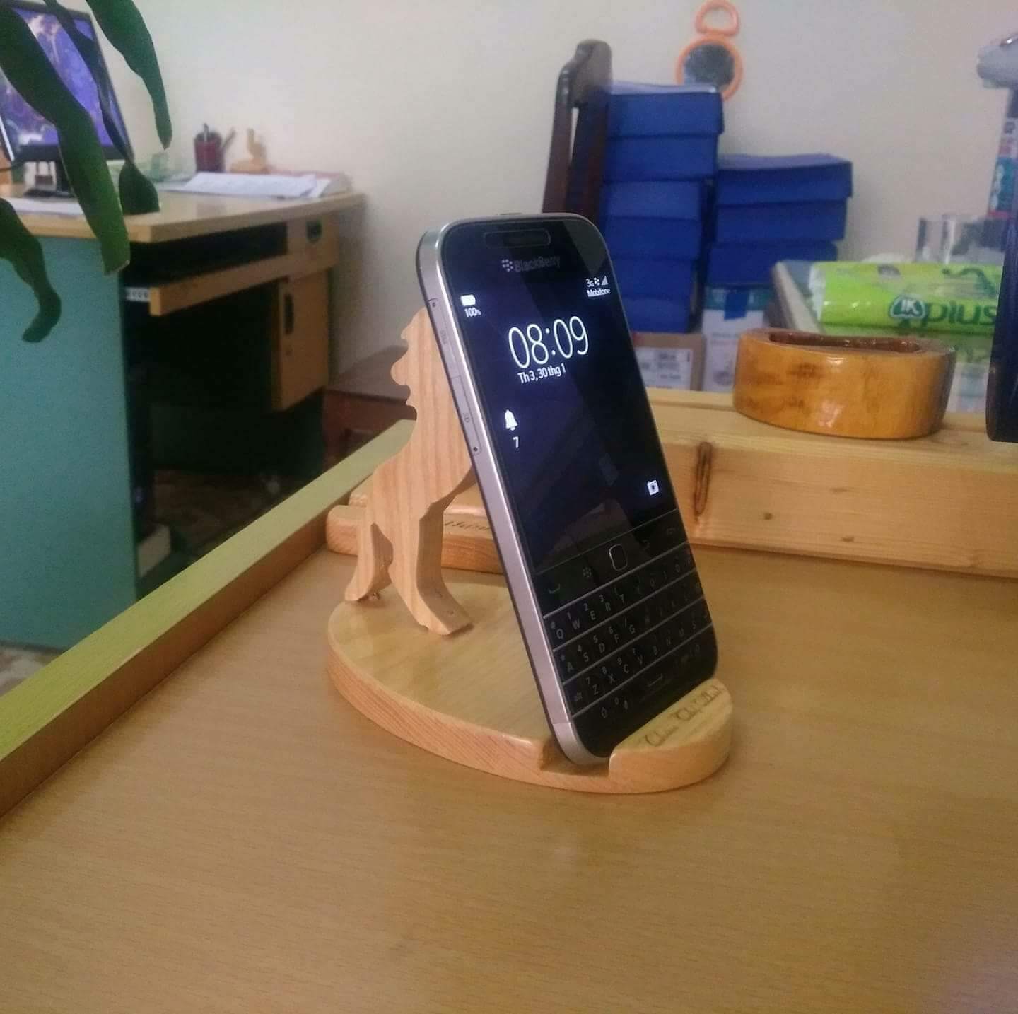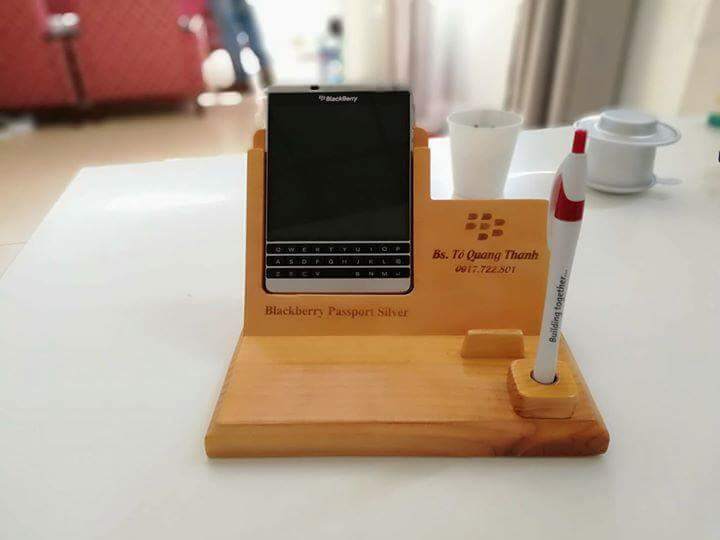 Đế gỗ để bàn cho đthoai Blackberry và các smarphone khác.