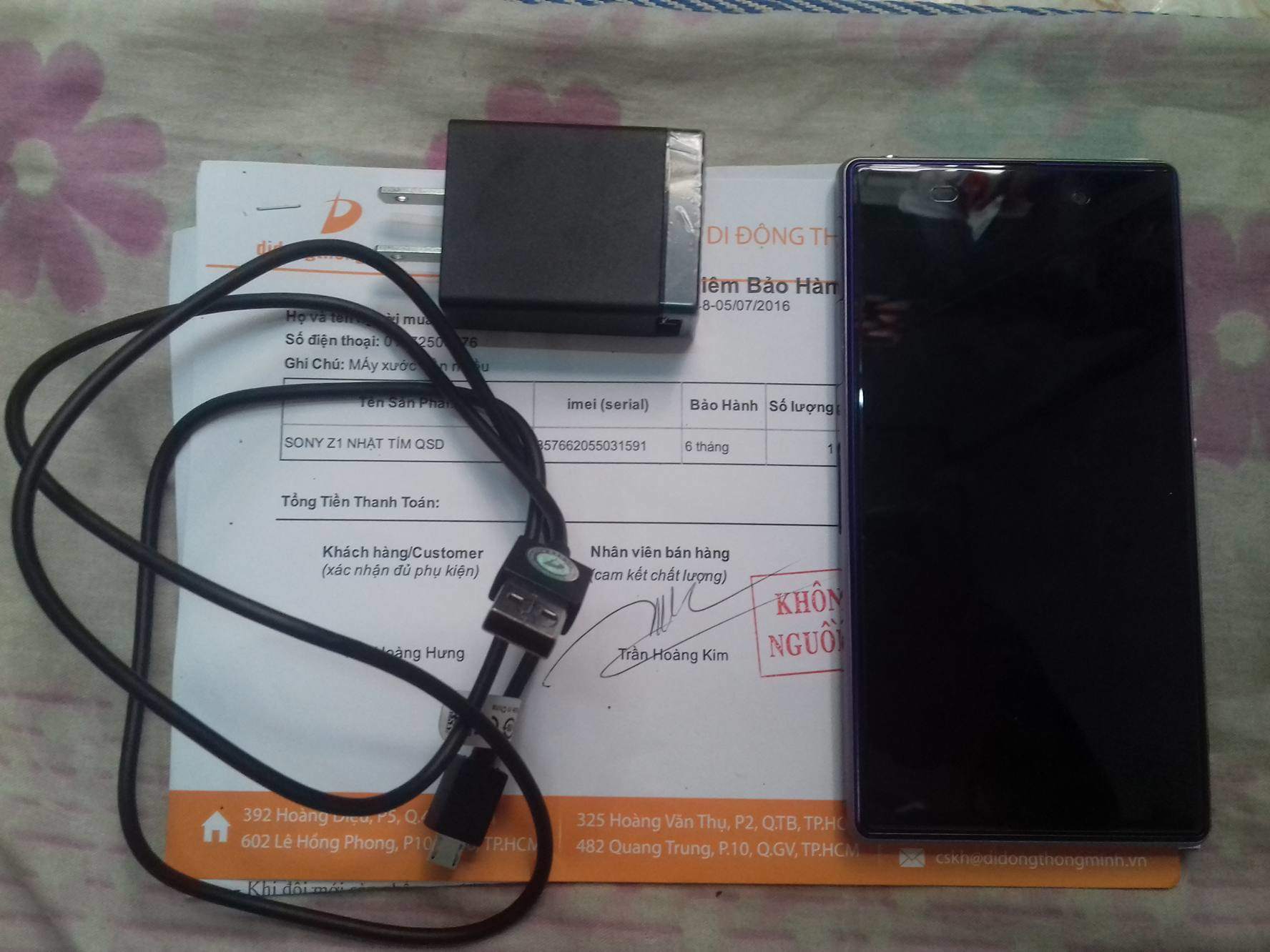 Có con SOny Z1 màu tím của Nhật, nguồn gốc máy mua didongthongminh và còn trong thời gian bảo hành. Máy có sạc cáp và mình cũng đã mua thêm dock sạc cho e nó. Máy còn khá, lúc mua pin khá yếu nên didongthongminh đã thay cho viên pin mới giờ dùng rất ok ngoài ra chưa sửa gì. Nay cần giao lưu sang mọi thể loại đổi gió chơi, ae nào có nhu cầu gl cứ nt trực tiếp hay zalo cho e cho tiết kiệm vì đang học và thi nên ít nghe dc. Sdt 01672500776. Địa chỉ như ở trên nick ạ.