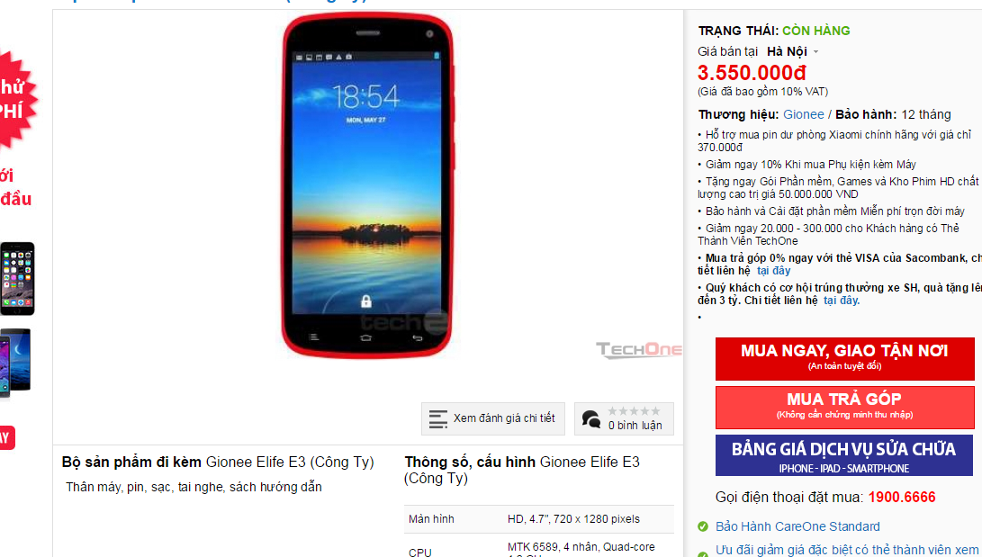 Chào mọi người mình muốn bán máy Gionee elife e3 máy còn mới gần như 100% vì mình dán hết nilon, điểm qua cấu hình ram 1g chip lõi tứ, camera sau 8mpx trước 2mpx (BẠN NÀO THÍCH TỰ SƯỚNG THA HỒ)link tham khảo giá : http://www.techone.vn/gionee-elife-e3-cong-ty-2168.html. Do mình muốn bán đi để lấy tiền đóng khóa học thêm bạn nào mua mình bán 2tr1 nhé chỉ fix nhẹ thôi đừng dìm hàng mình nha MÁY GIONEE BẠN CÓ THỂ SEARCH ĐỘ BỀN NHÉ, THỰC SỰ MÁY RẤT TỐT VÀ BỀN gọi hoặc nhắn tin mình 0971.007.234 Mình ở HÀ NỘI, bạn nào đi qua không mua cmt hay up cho mình một cái nhé mình cảm ơn nhiều.