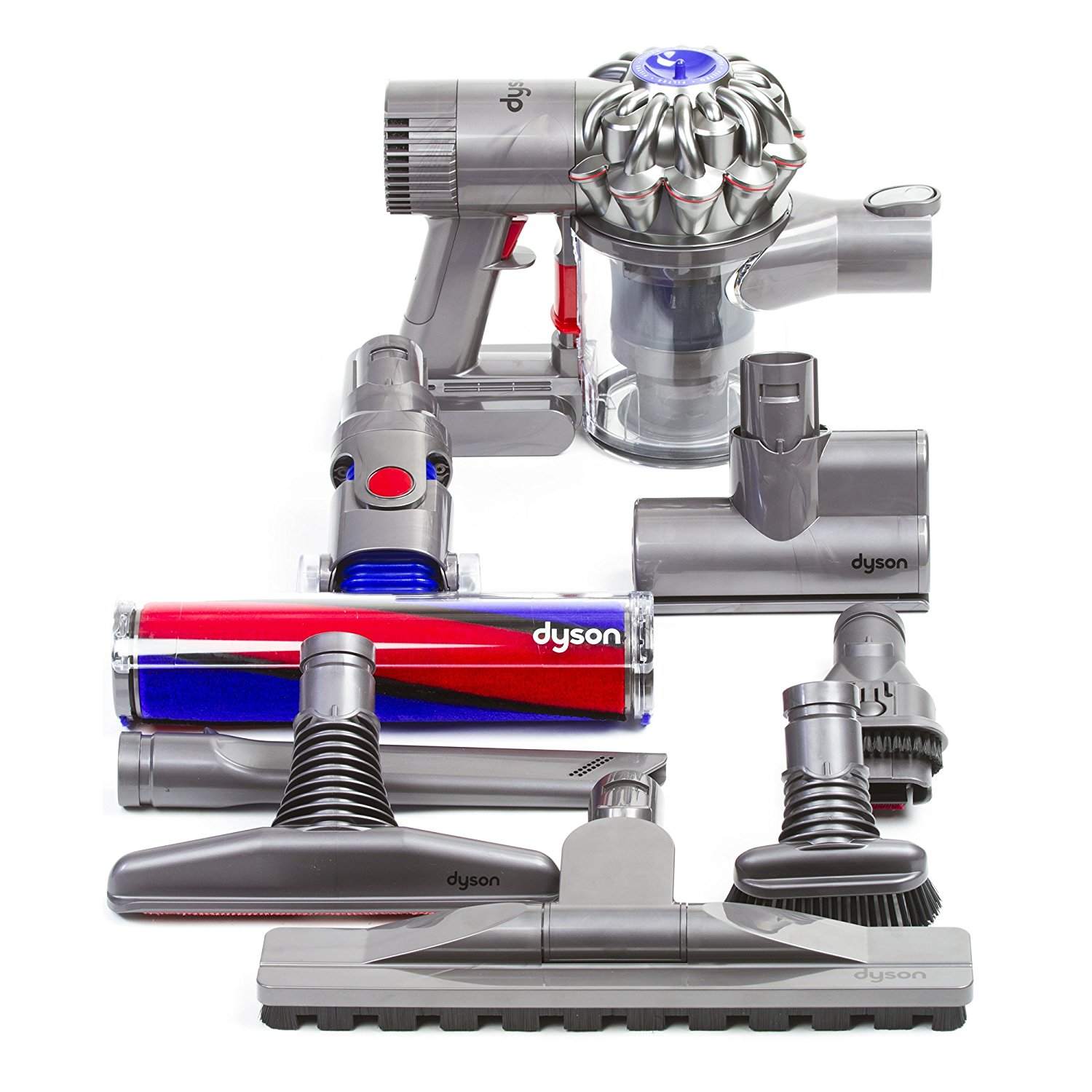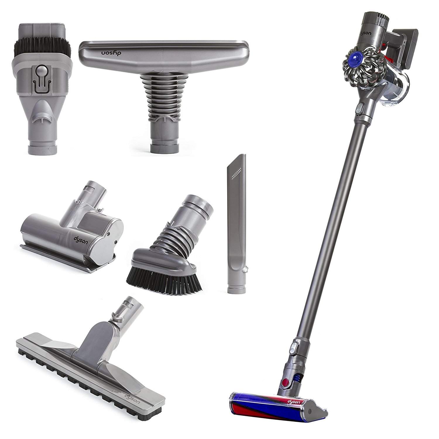 - Máy hút bụi Dyson V6 Fluffy vaccum cleaner là dòng máy thay thế cho Dyson DC59 Animal. Tuy nhiên, máy có nhiều phụ kiện hơn hẳn: 7 bộ đầu so với 4. Máy được định vị chỉ dưới dòng Absolute trong series V6 (cao cấp hơn V6 motor head và V6 motor head plus)