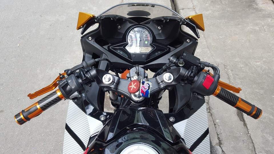 - Đã lên chống đổ, gương rizoma, tay nắm rizoma, tay côn phanh biker, chắn bùn, pô Akaprovic, passing, tắt mở động cơ như cbr600, xích vàng DiD, lên lốp sau 140... Về Zin cho a e trong một nốt nhạc!