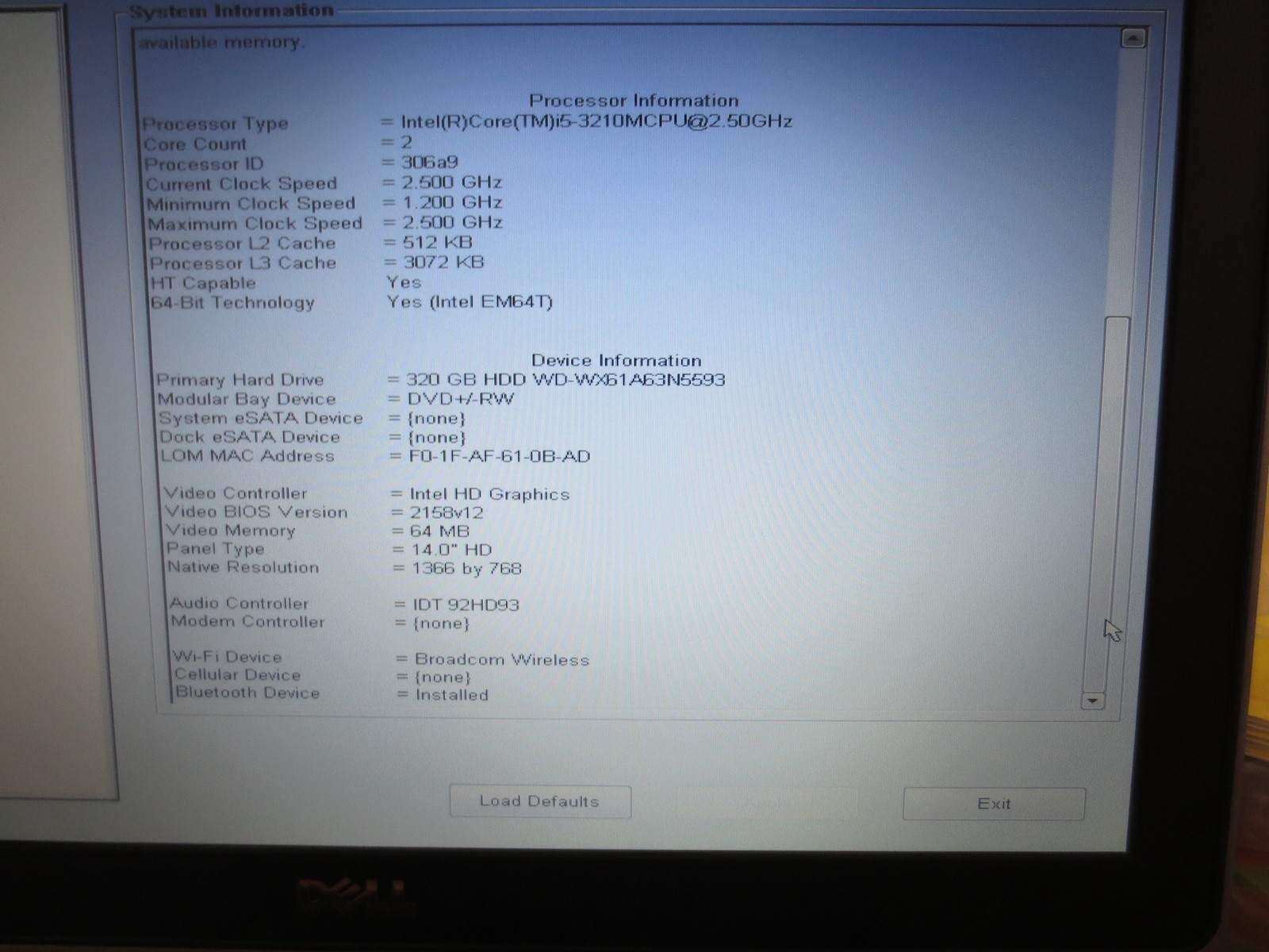 CPU : Intel® Core i5 3210M 2.5Ghz