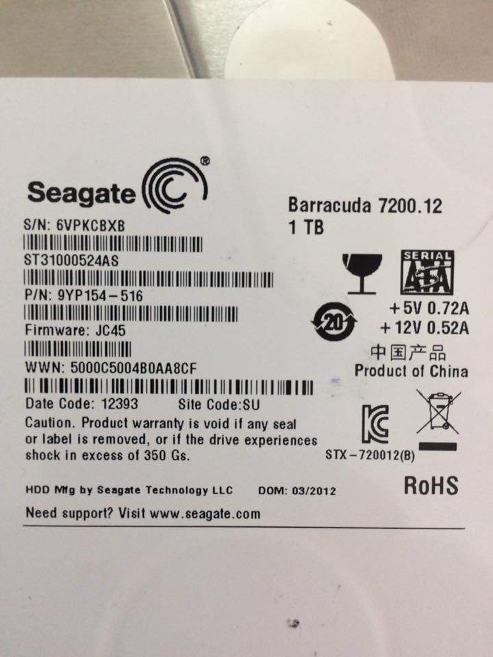 Ổ cứng Seagate 1Tb tốc độ 7200rpm good sk100% bh 1th ! bác nào quan tâm call hoặc liên hệ qua Zalo , facebook Imessage Cảm ơn đã đọc tin