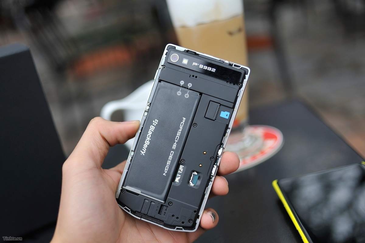 Nắp lưng có thể tháo rời, pin có thể gỡ ra. Porsche Design P'9982 dùng microSIM và đi kèm khe cắm thẻ nhớ hỗ trợ tối đa 64 GB.