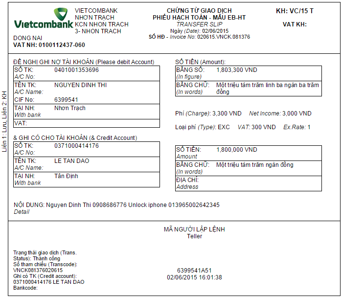 Lưu ý: Quý khách hàng chuyển khoản xin vui lòng ghi rõ thông tin sau: