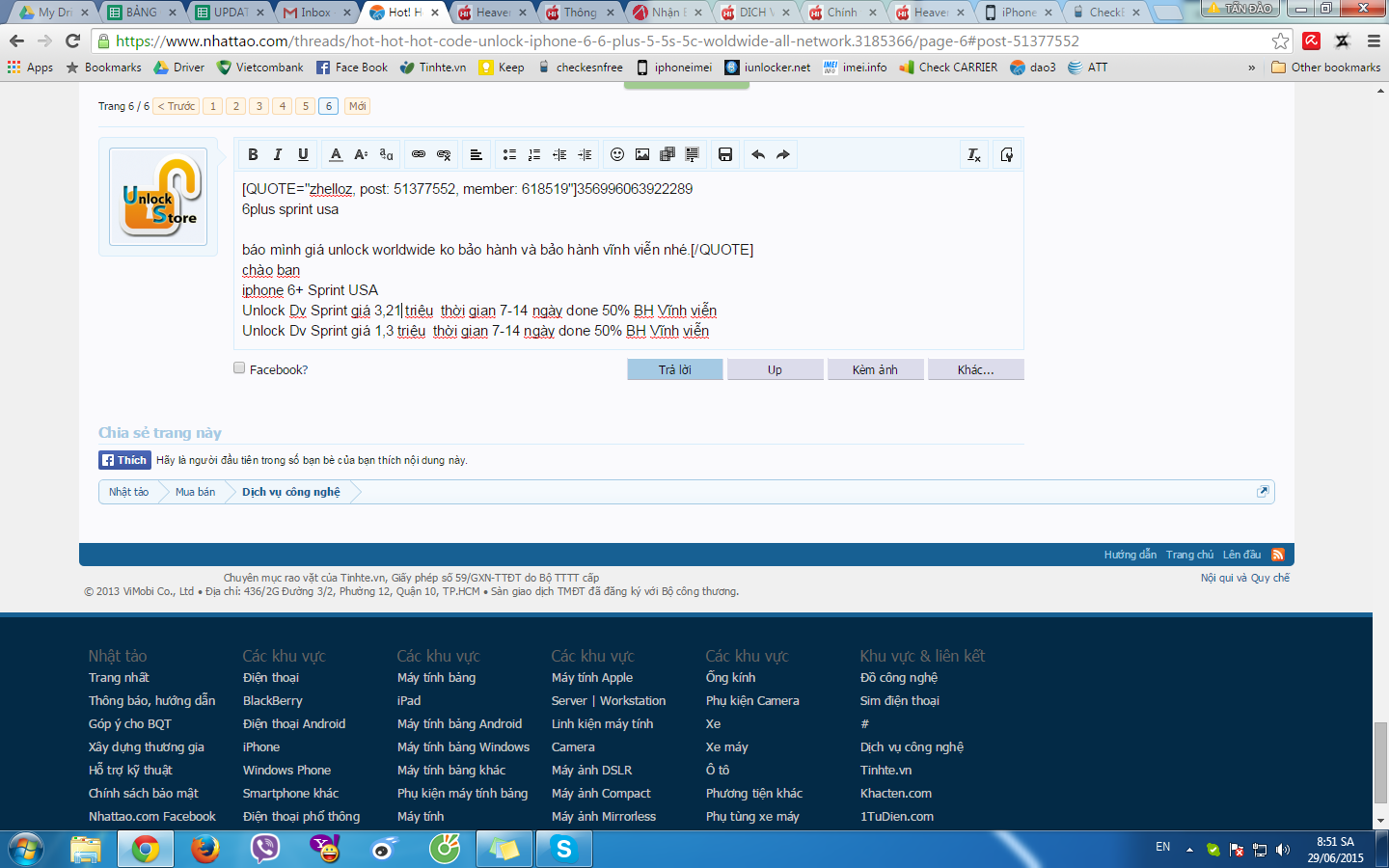 Unlock Dv Sprint (Clean IMEI) giá 1,3 triệu thời gian 7-14 ngày done 50% BH Vĩnh viễn
