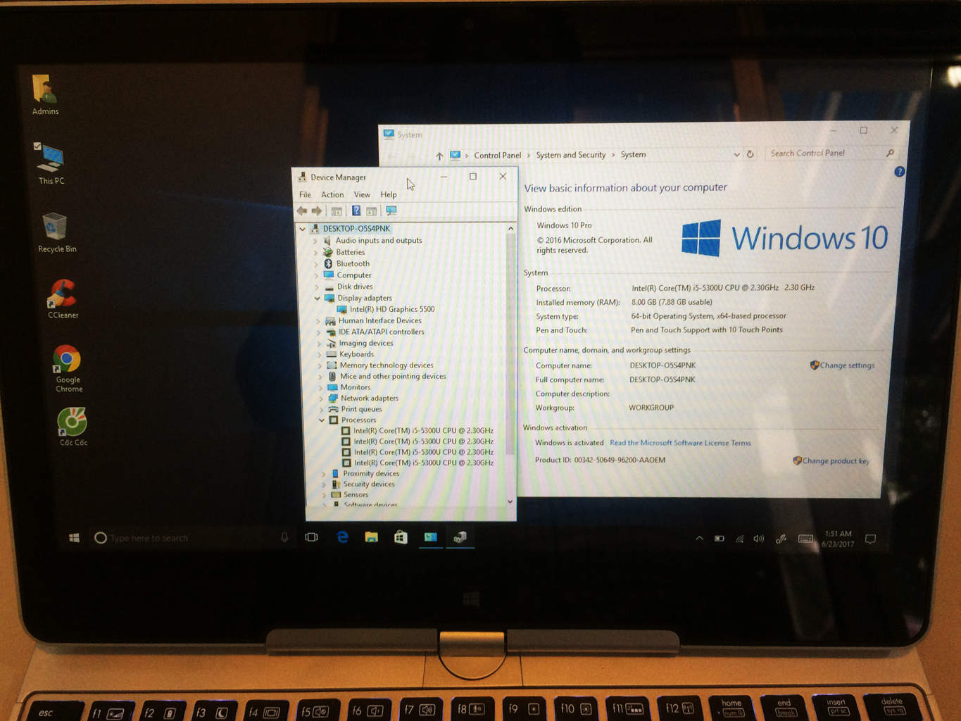 - Bộ xử lý: Intel® Core™ i5 5300U Processor 2.3 GHz, upto 3.3 Ghz