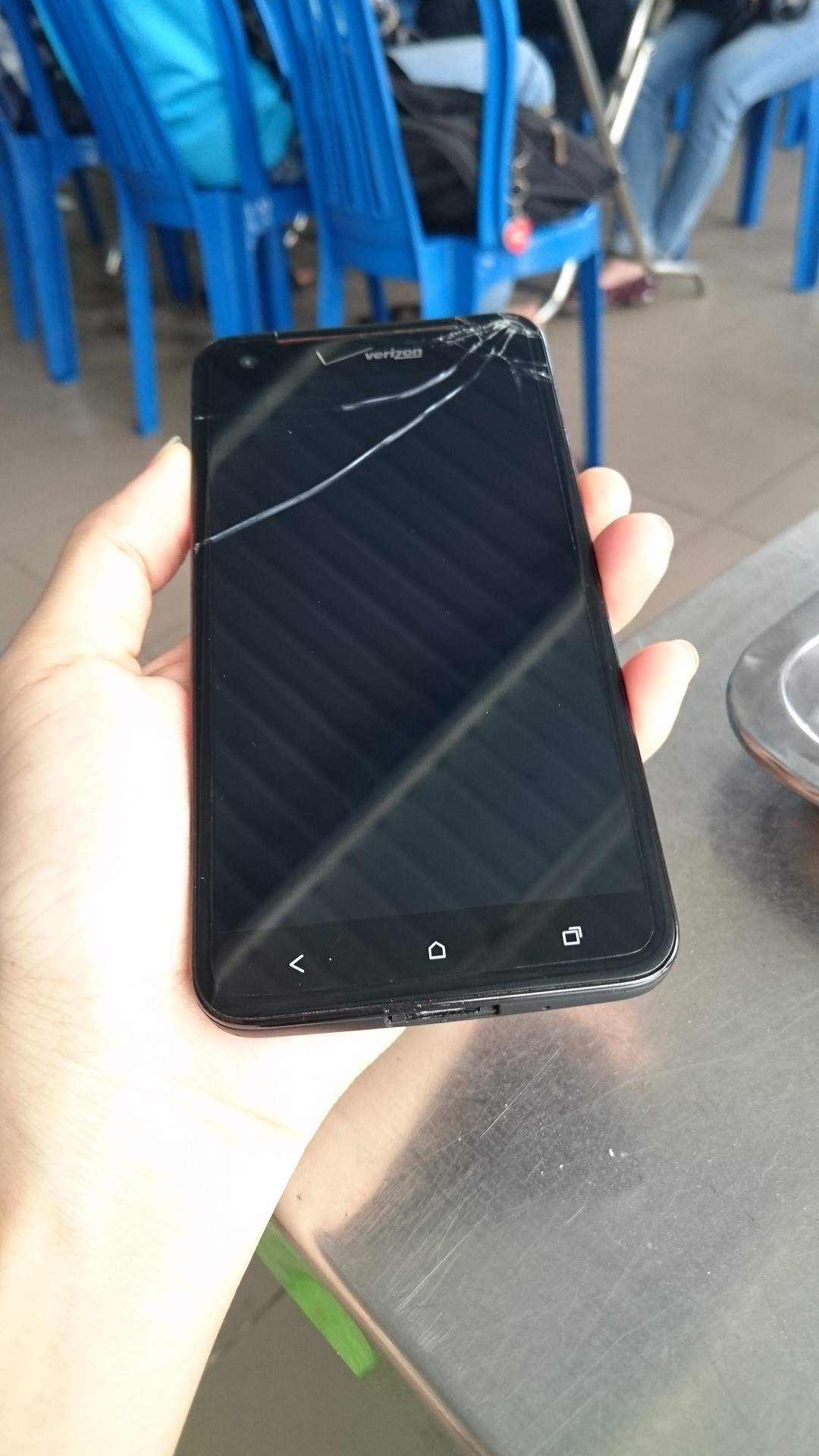 Mình hiện đang có một con HTC Butterfly Droid DNA của nhà mạng Verizon bị nứt màn hình như hình dưới do thằng em họ làm rơi, hàng do ông bác mình mua từ bên Mỹ về cho lại, các chức năng, cảm ứng còn ngon lành. Mình để lại cho bạn nào muốn thay màn xài tiếp hoặc lấy linh kiện thay sửa, hàng chưa bóc một lần từ lúc mới mua. Giá là 1 triệu, có thể fix một ít cho ai đến tận nơi xem hàng và thực sự muốn lấy, ở Quận 5 (trường ĐH KHTN) hoặc quận Gò Vấp (nhà mình). Bạn nào quan tâm thì trước khi đến xem nhớ gọi hoặc nhắn tin bào trước cho mình, vì có lúc mình ở trường, có lúc ở nhà.