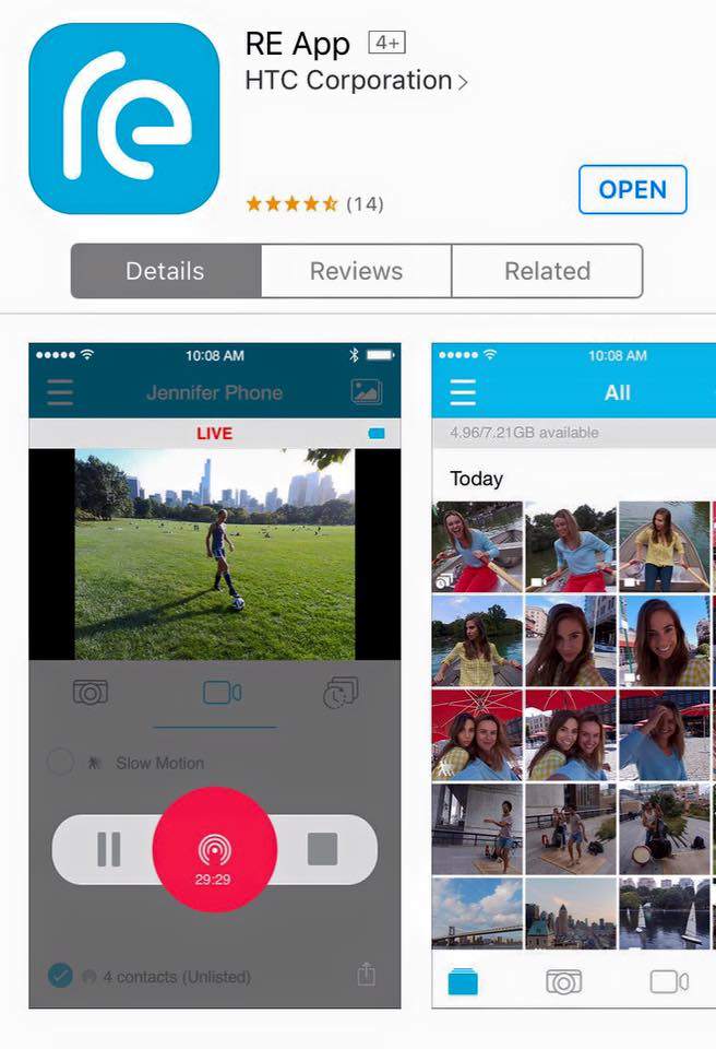 RE App by HTC Corporation (Hỗ trợ iOS và Android. Ứng dụng chỉ để xem hình đã chụp, không cần kết nối với điện thoại vẫn chụp được và lưu trữ trên MicroSD)