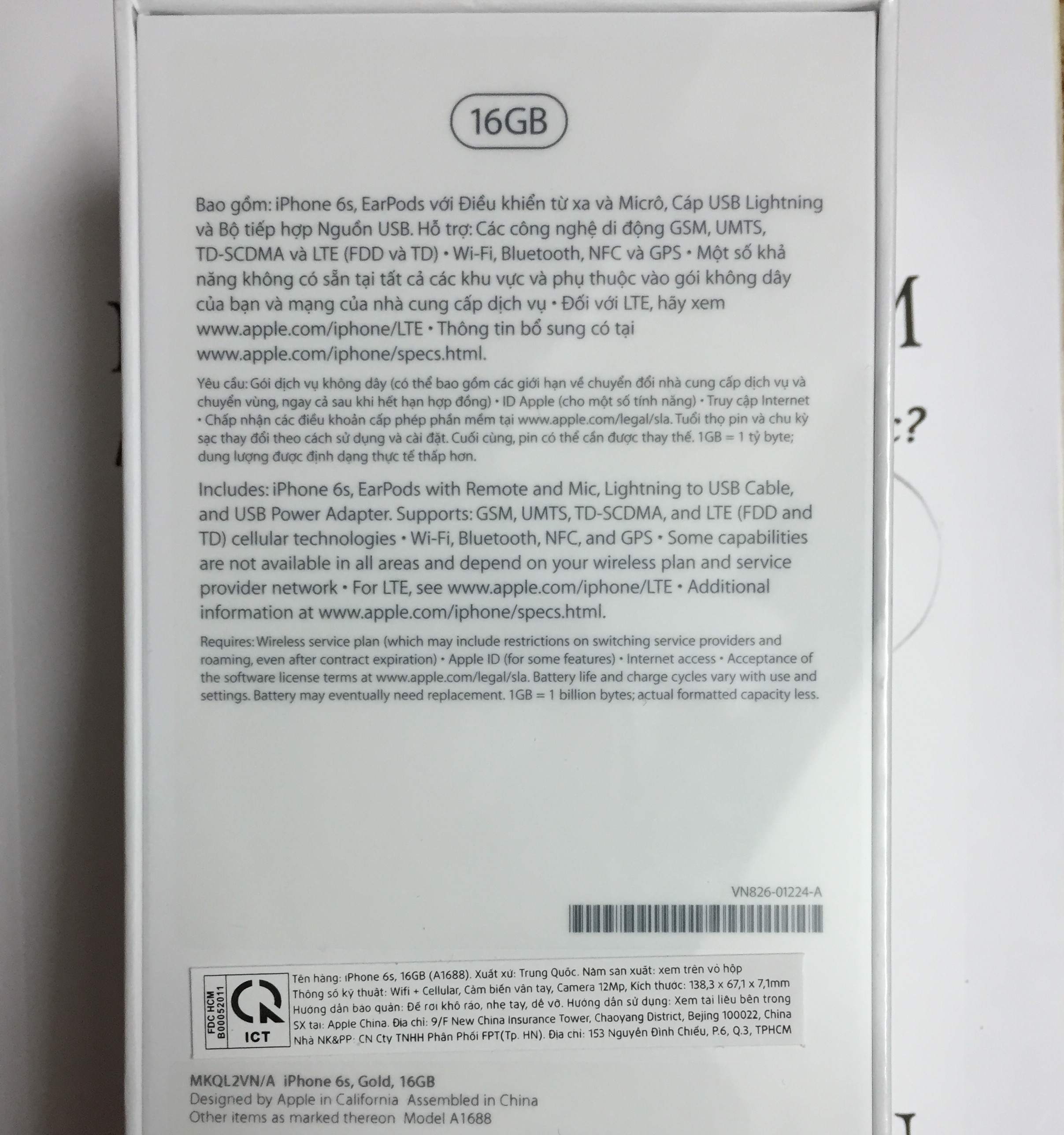 + IP 6S, màu GOLD.