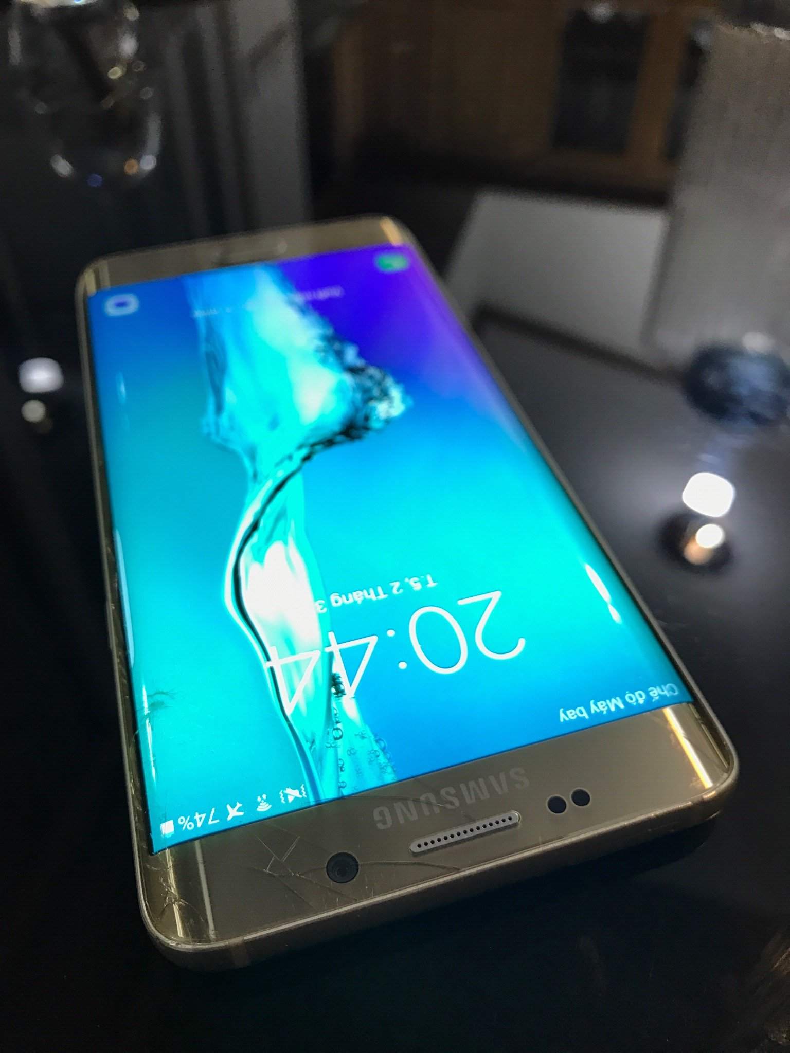 - S6 edge plus gold 32 gb công ty. Nứt kính để 4,9. Cầm tiền đến xem có thể fix vui vẻ. Nứt kính nhưng dùng như bình thường, vân tay siêu nhạy chụp ảnh đẹp hơn ip7 đang dùng.